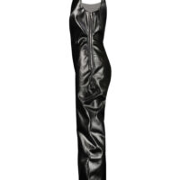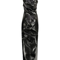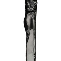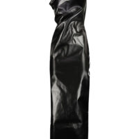 Rick Owens athena gown in coated stretch denim, one shoulder, side slit