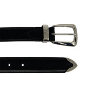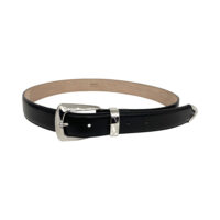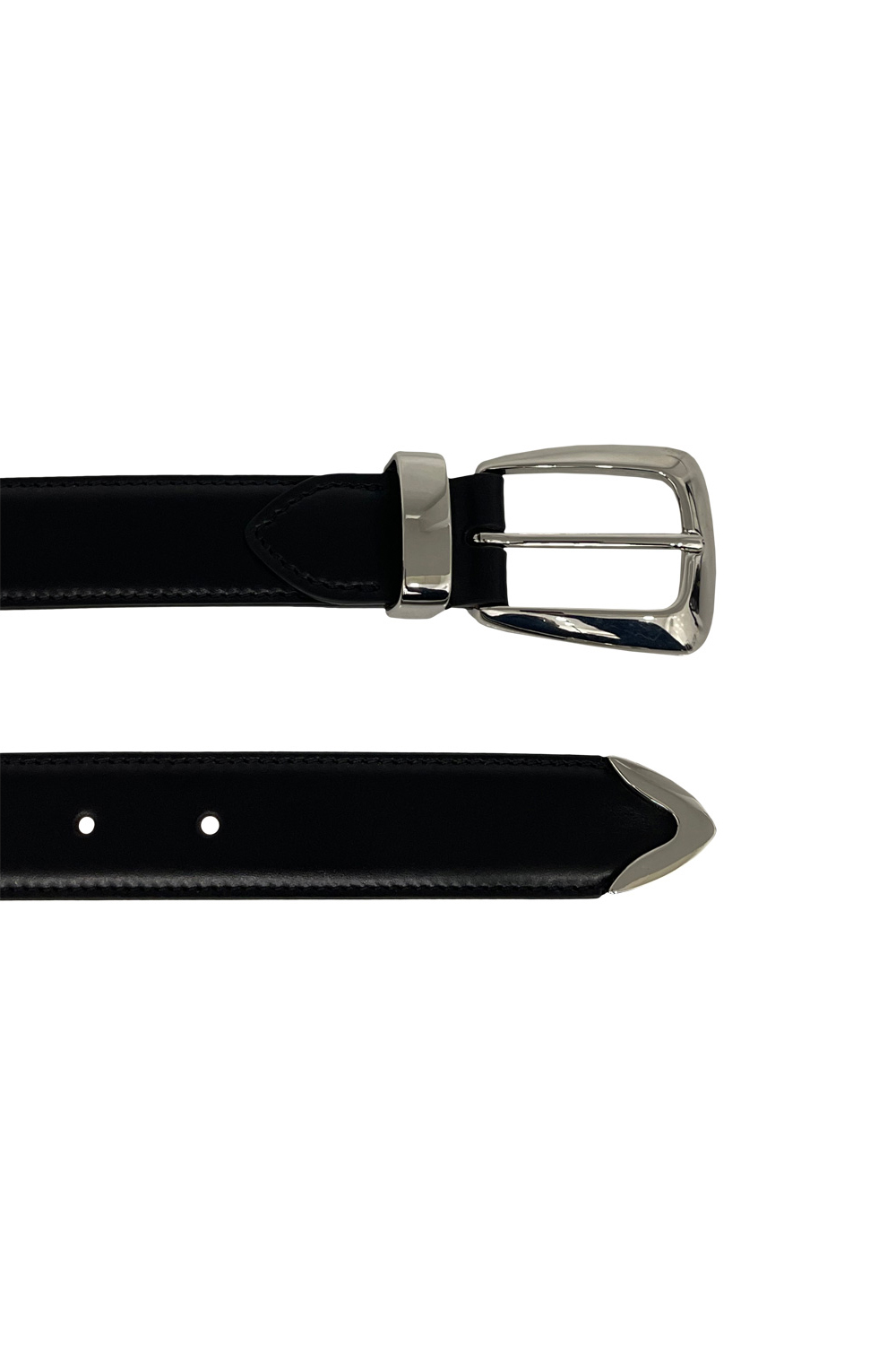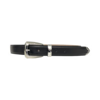 Khaite Benny belt in calfskin with tonal topstitching, silver-toned brushed buckle, loop, and tip.