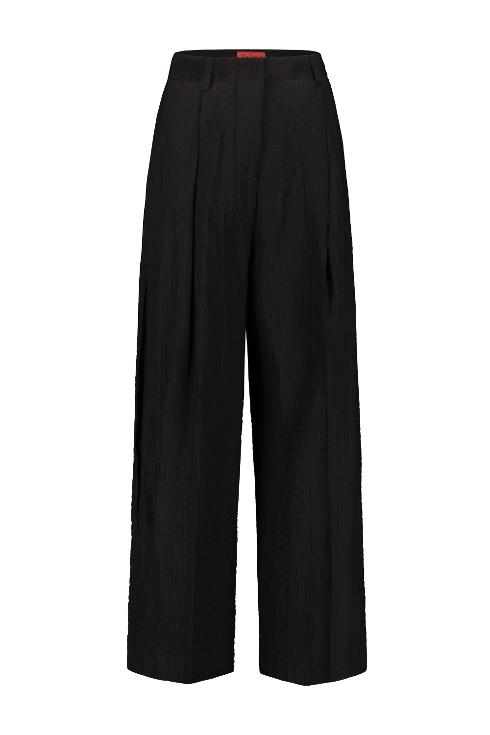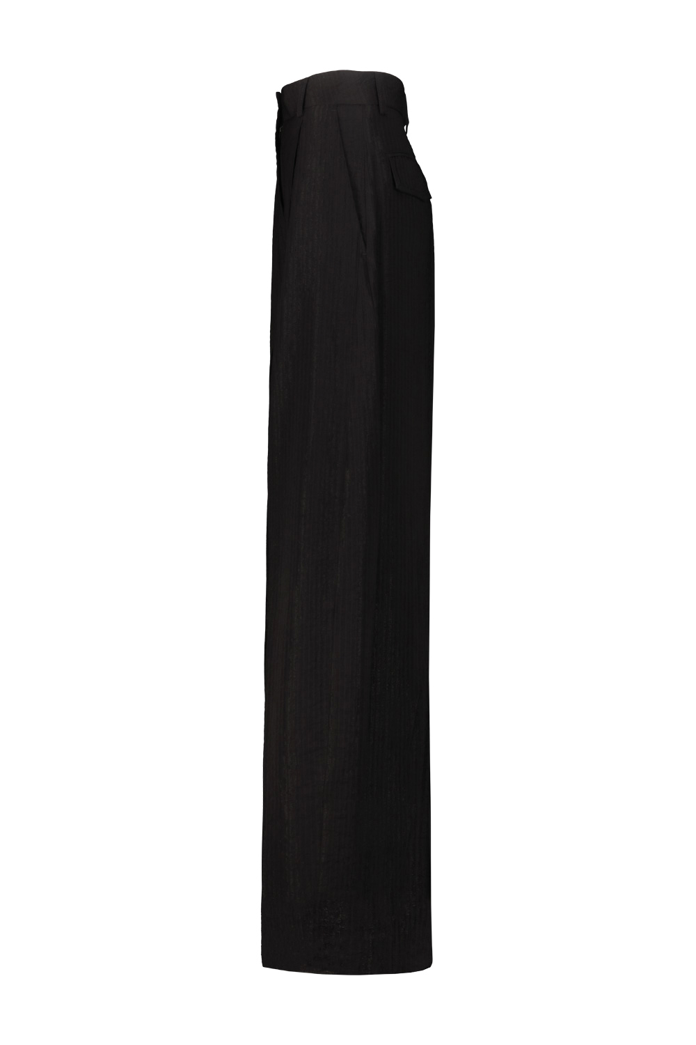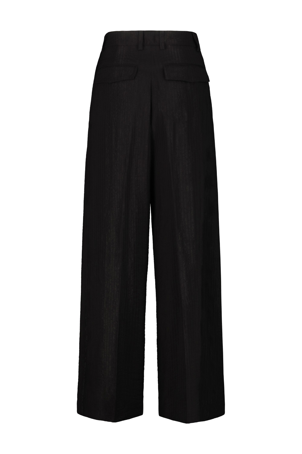 The Latest Billy pant in flowing textured viscose, darts on the front, wide leg, two side pockets, two flap pockets on the back, waist with belt loops.