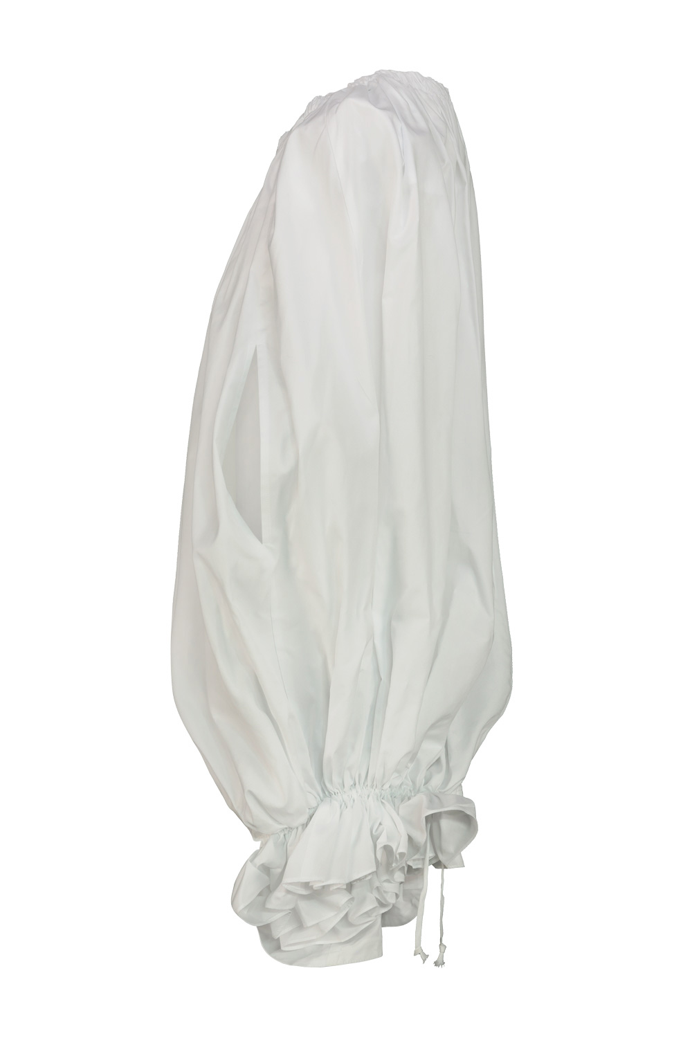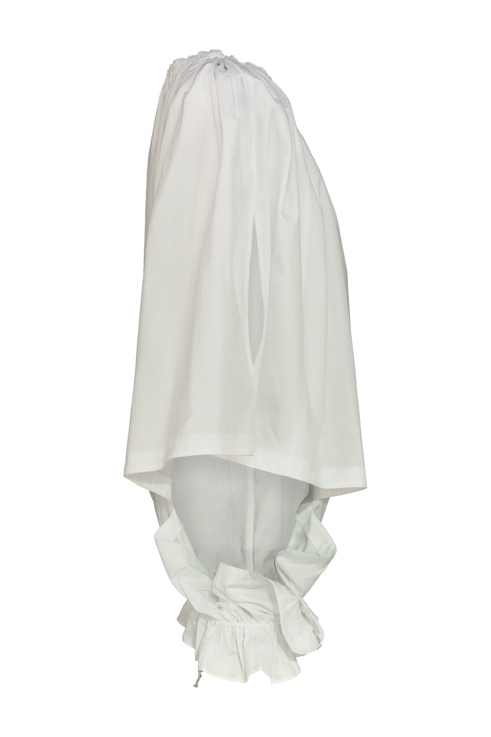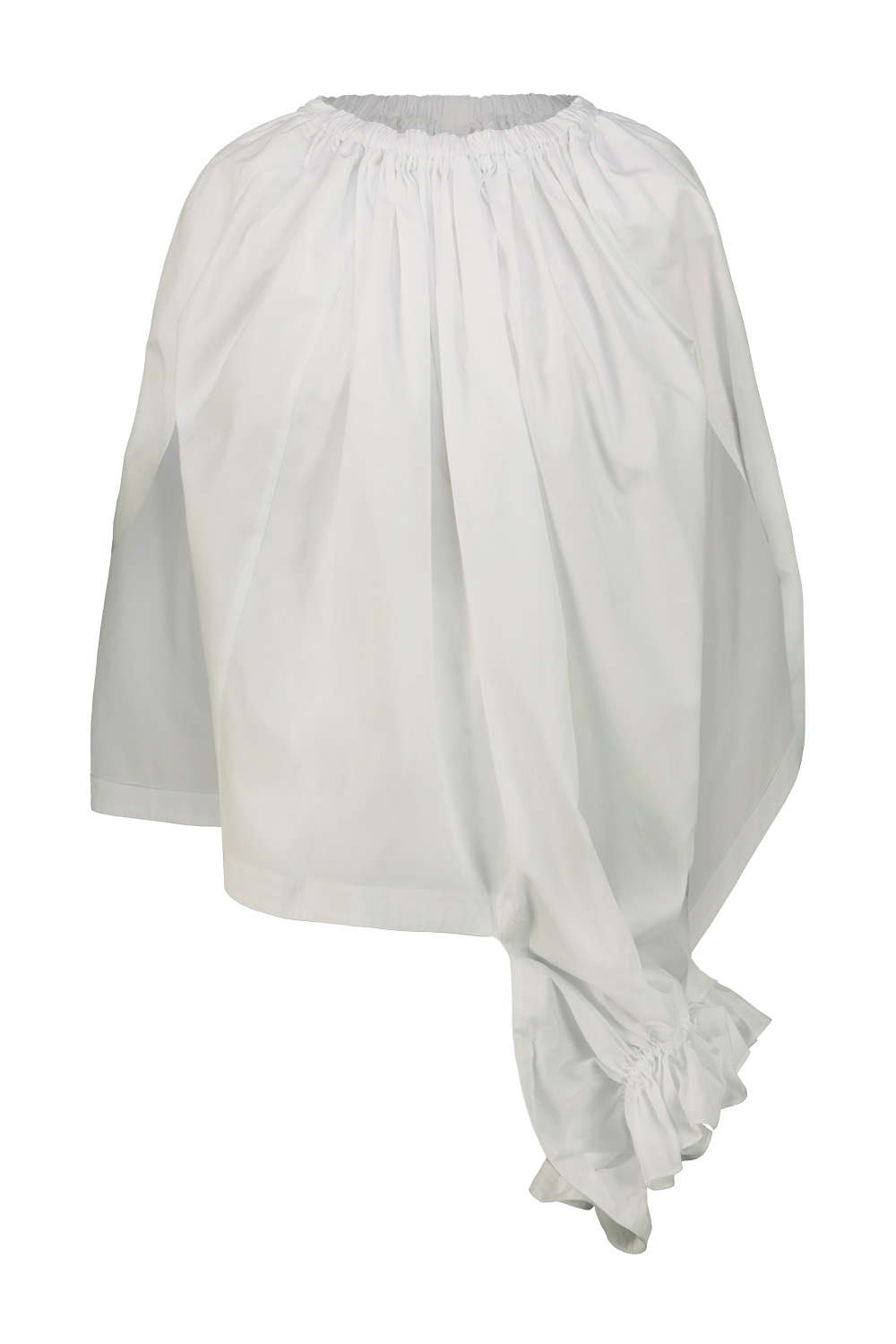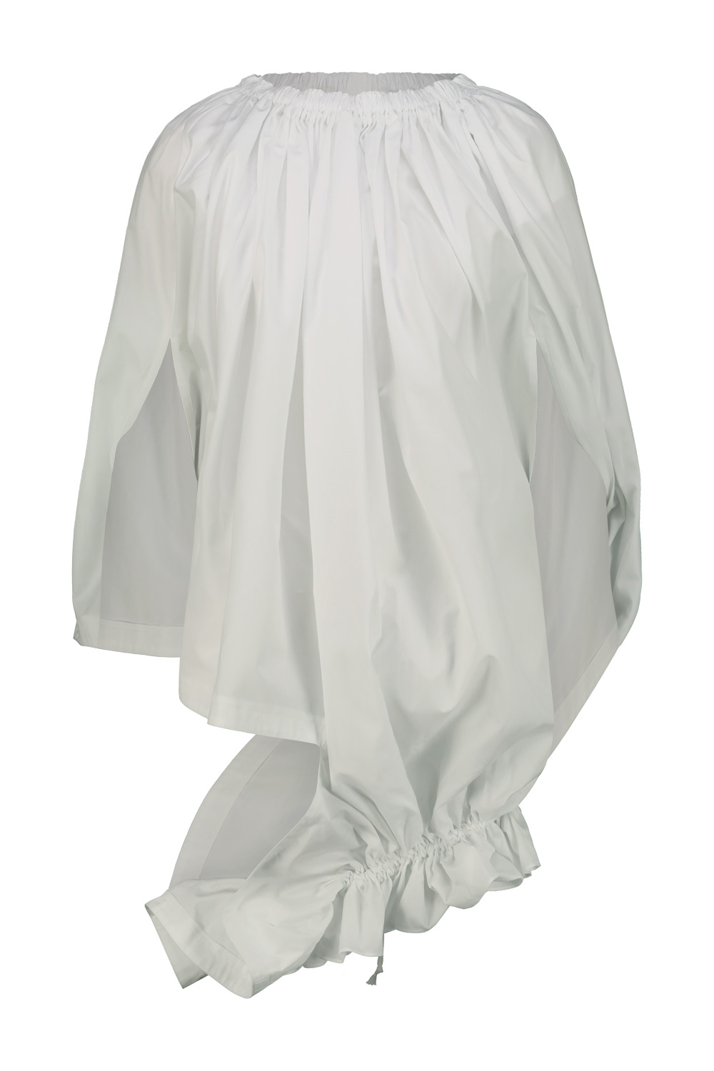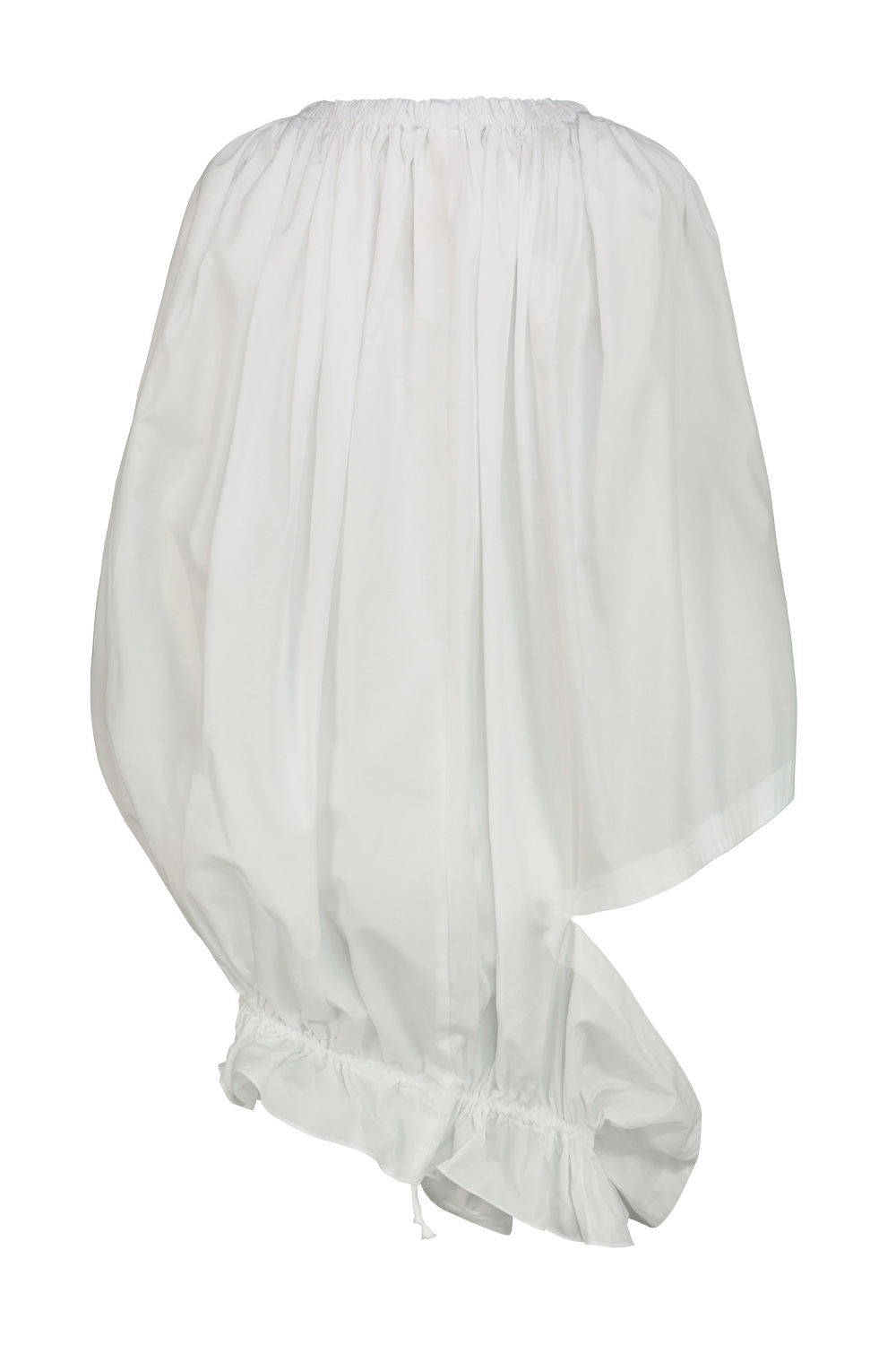 Comme des Garçons cotton top with balloon effect, elasticated neckline, hem with side detail with ruffles and drawstring.