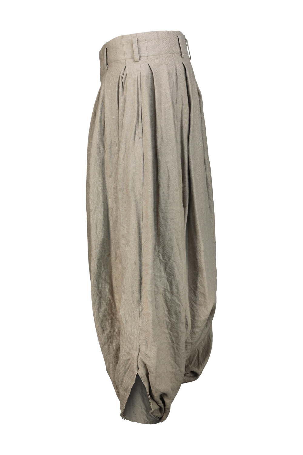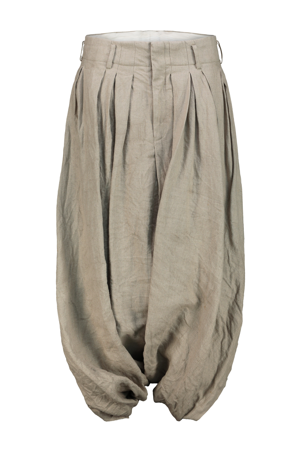 Comme des Garçons Turkish pleated trousers in wrinkled linen, side pockets, waist with belt loops.