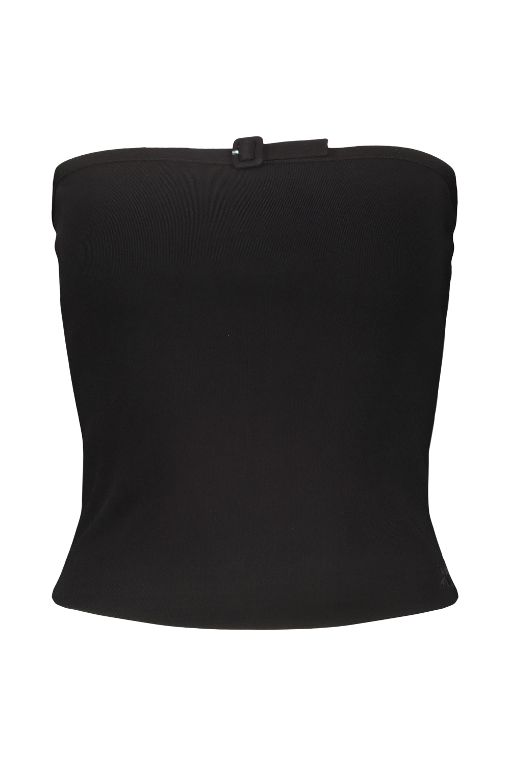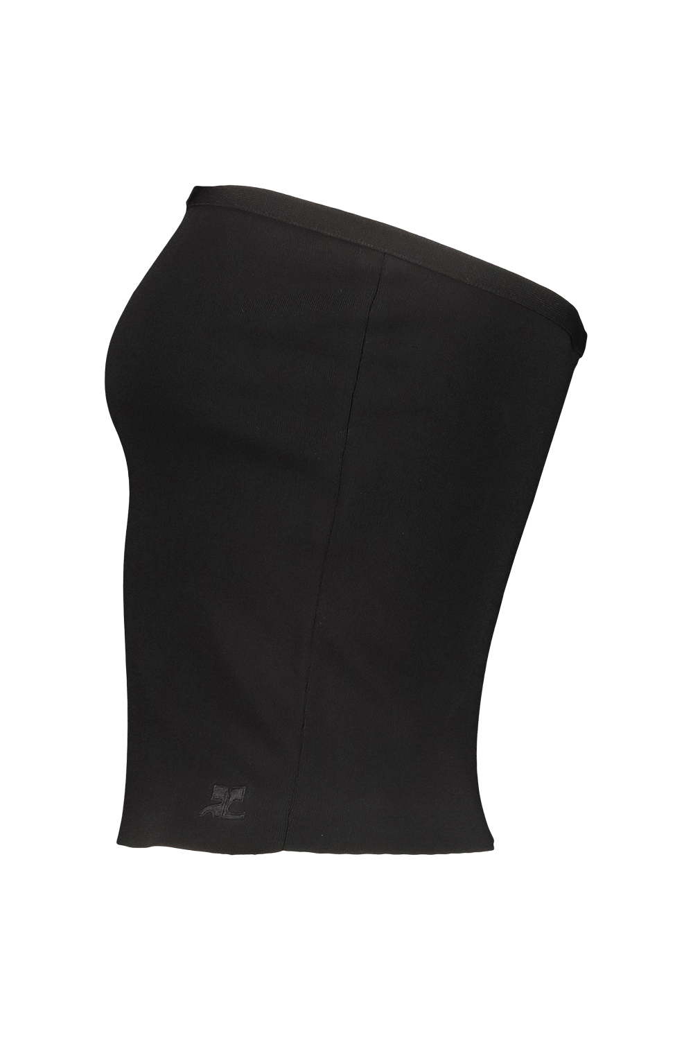 Courrèges knit top bustier top with buckle detail on the front and embroidered logo on the bottom.