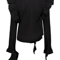Vetements deconstructed jersey blouse with application of raw cut ruffles and floating threads with an unfinished effect