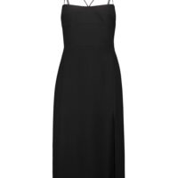 Drhope sheath dress with horizontal cuts detail on the breast and braided straps, high slit on the front.