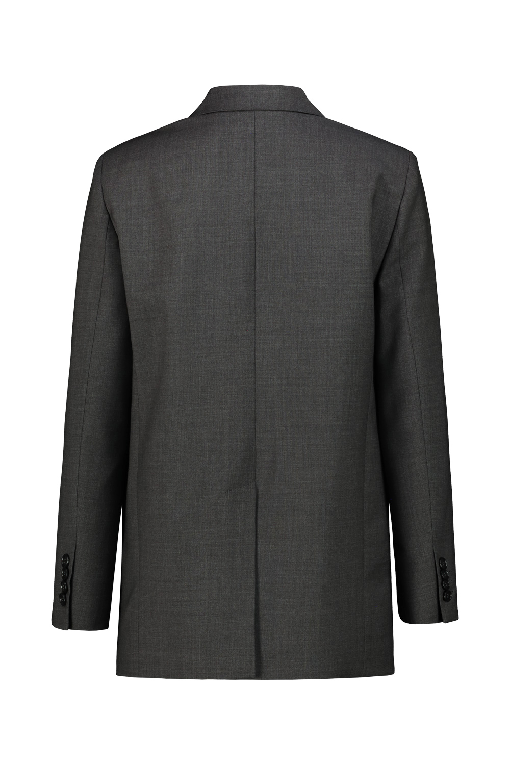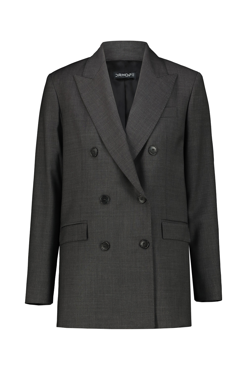 Drhope classic double-breasted jacket with peak collar, contrasting black buttons, flap pockets, and a centre back vent.