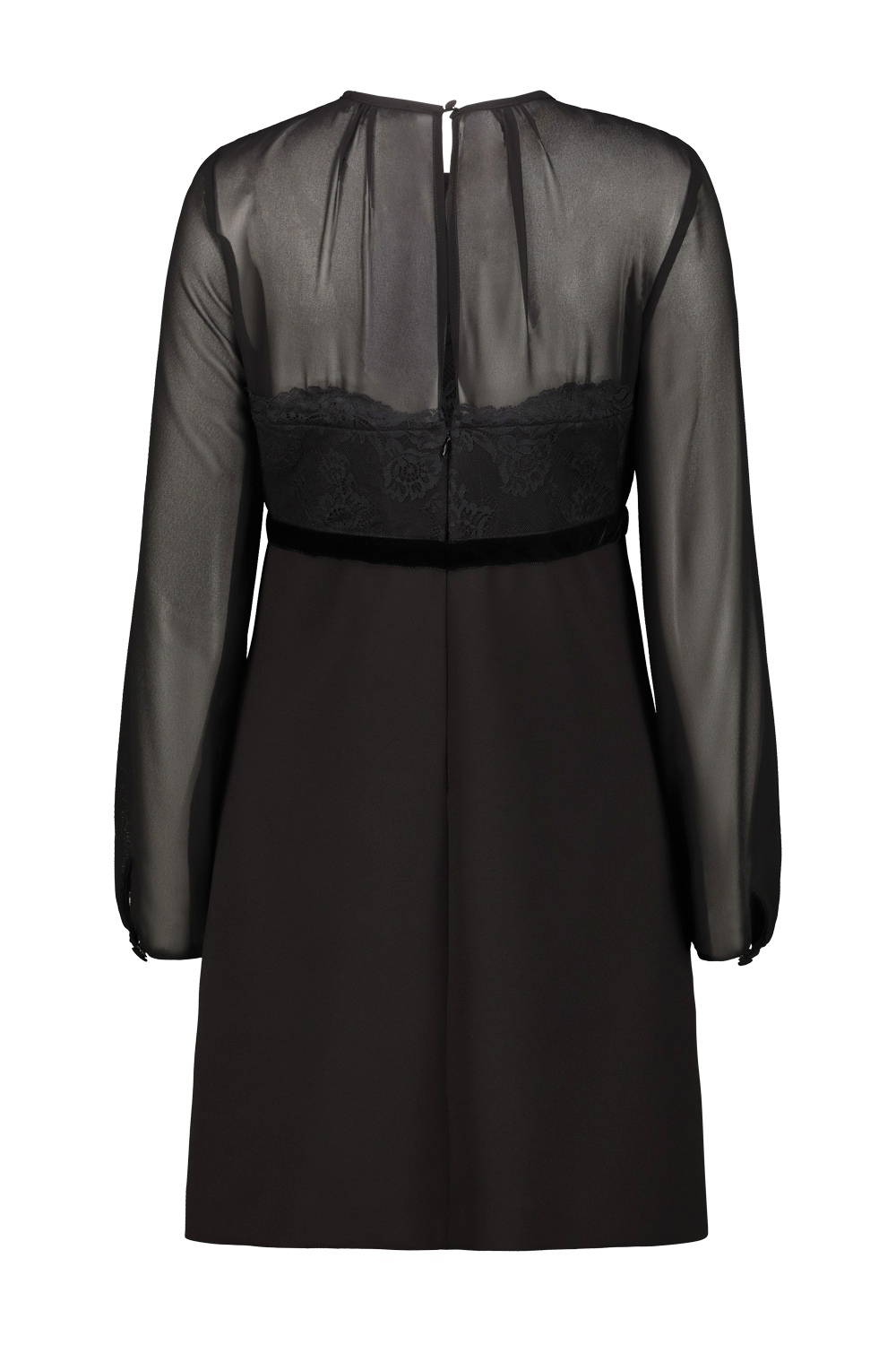 Drhope flared mini dress with sheer sleeves and lace applique on the chest. gtin code: 204645 014179