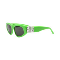 Balenciaga Dynasty D-Frame Sunglasses in neon green acetate with grey lenses. 100% UVA/UVB protection