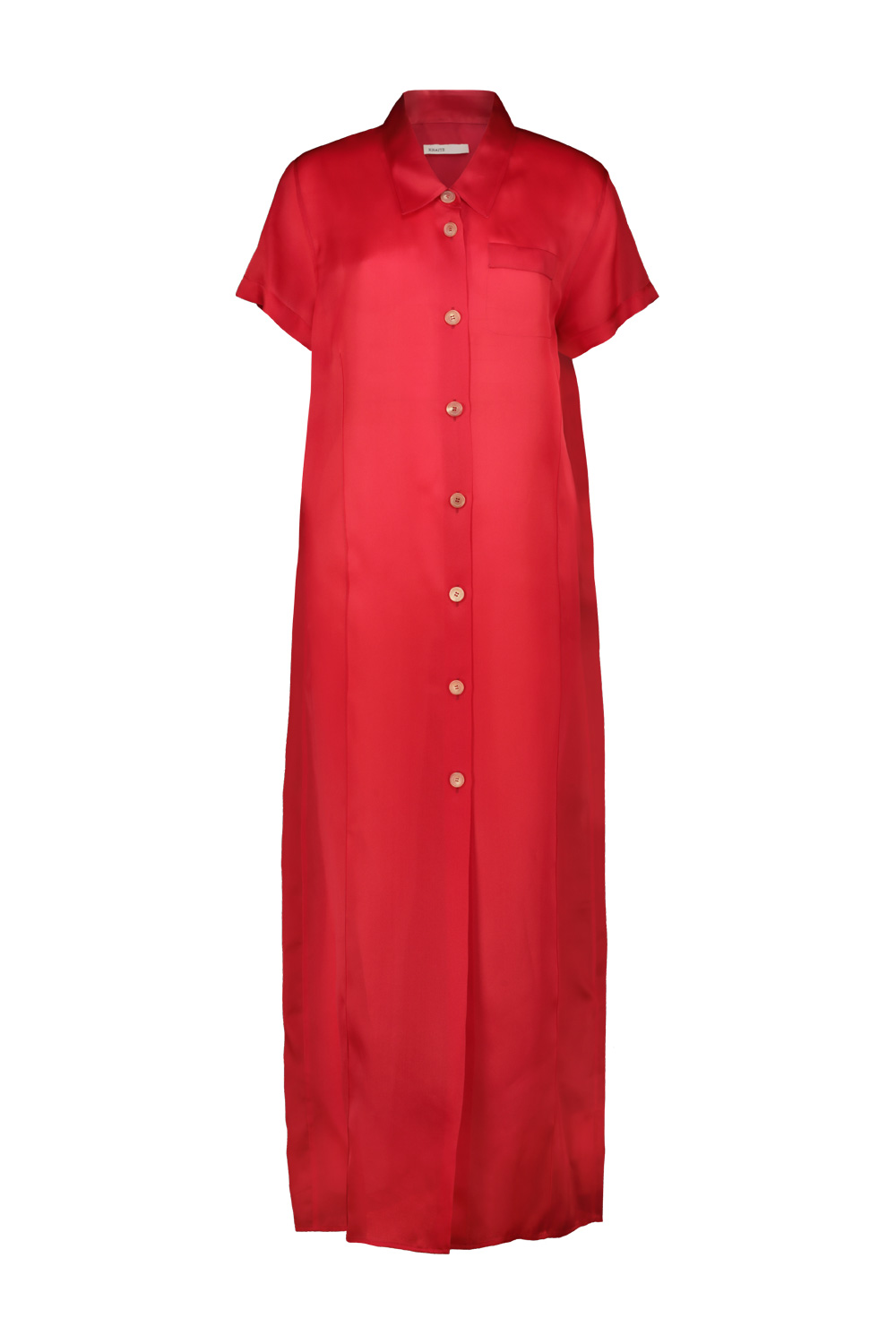 Khaite Effy shirtdress in crisp fluid organza, welt pocket at chest, pintucks at front and back.