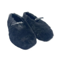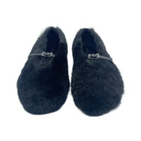 Proenza Schouler Tee Mary Jane flat ballerina in short haired shearling, slip-on silhouette, round toe, upper buckle strap.