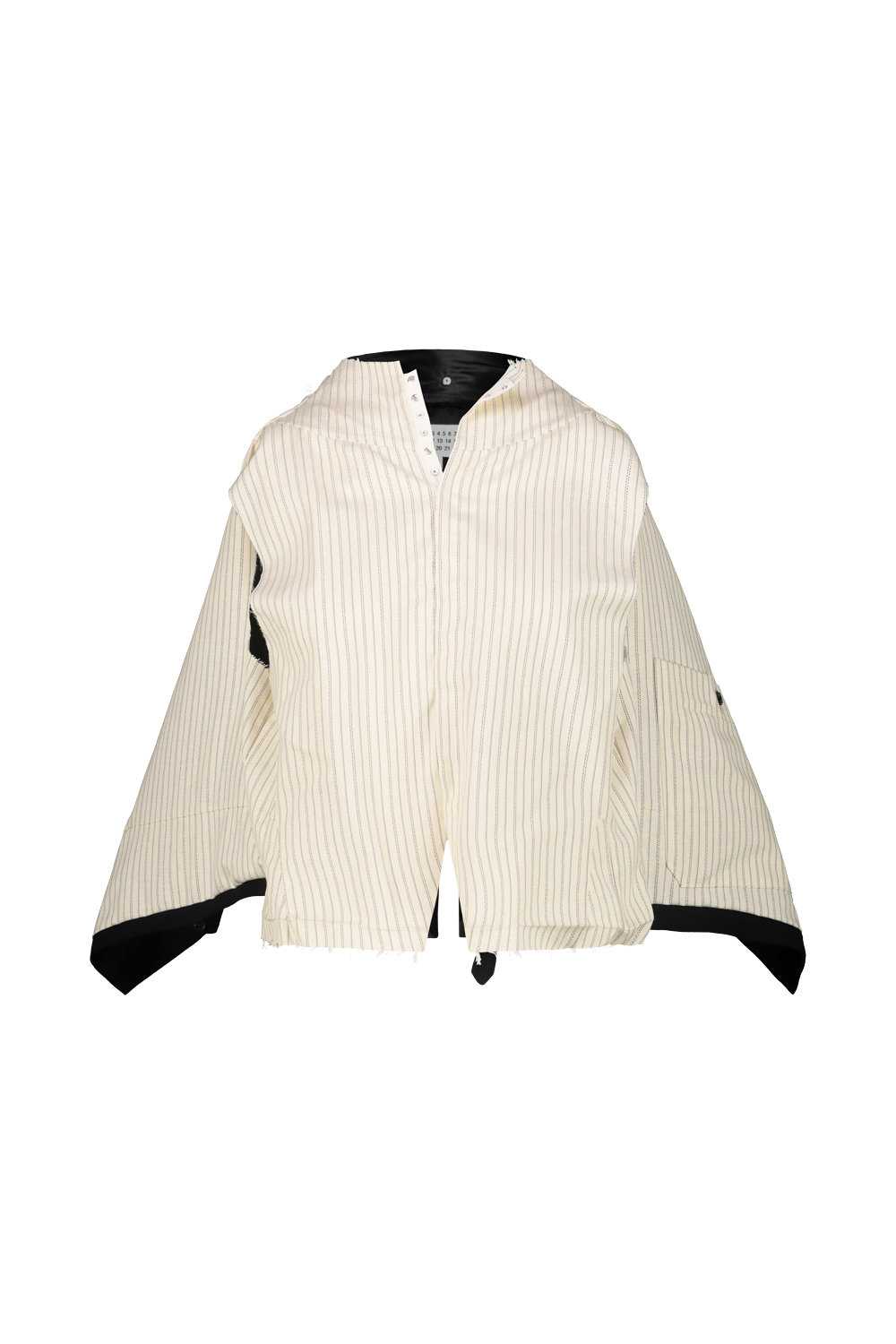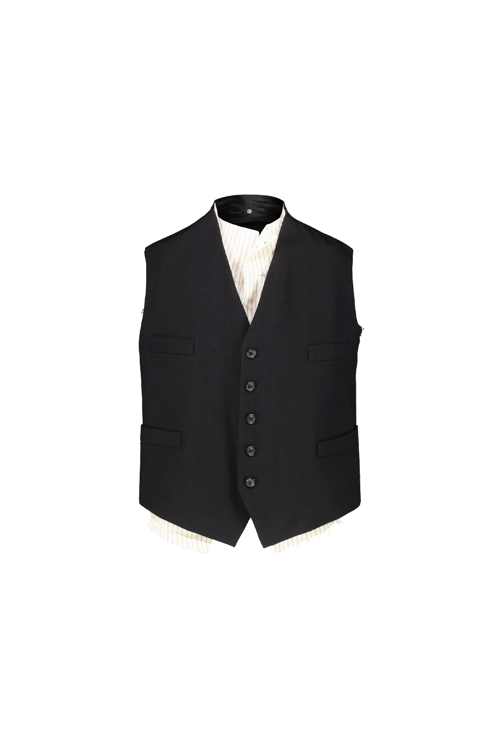 Maison Margielas Virgin wool twill waistcoat, paneled and layered construction, high neck, vertical stripe pattern, two chest welt pockets, two front welt pockets, martingale to the rear, asymmetric hem.