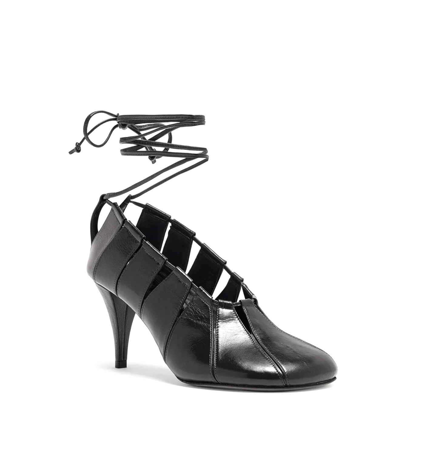 Proenza Schouler Glove hinge pumps in leather, rounded toe, adjustable side cording, anckle wrap.