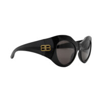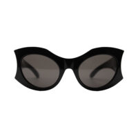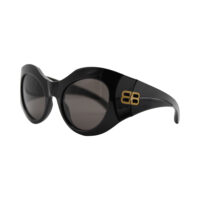 Balenciaga Hourglass Round Sunglasses in black bio-based injected nylon with grey lenses. 100% UVA/UVB protection