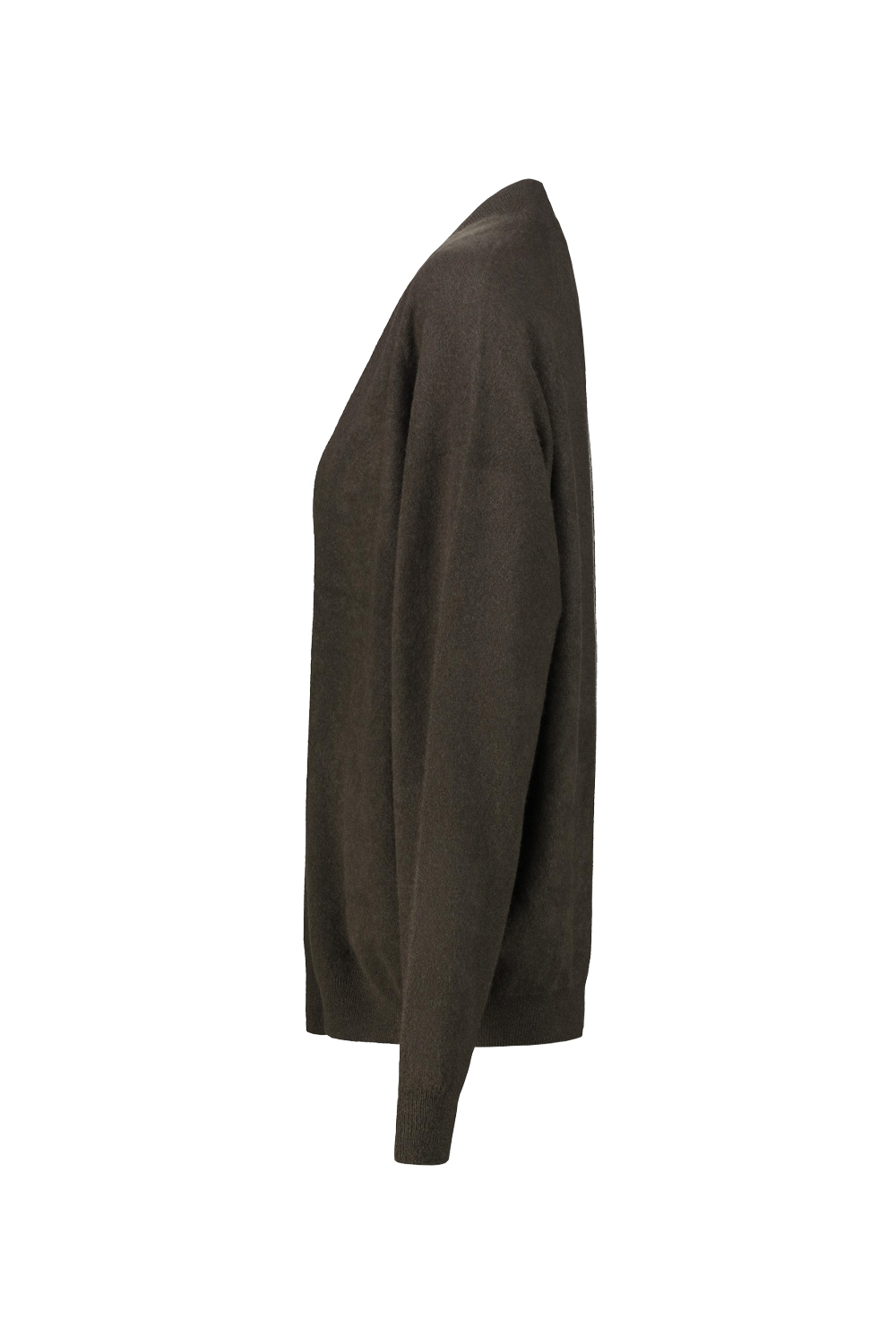 Frenckenberger Jhonny Deep Vneck sweater in black olive cashmere, oversize fit.