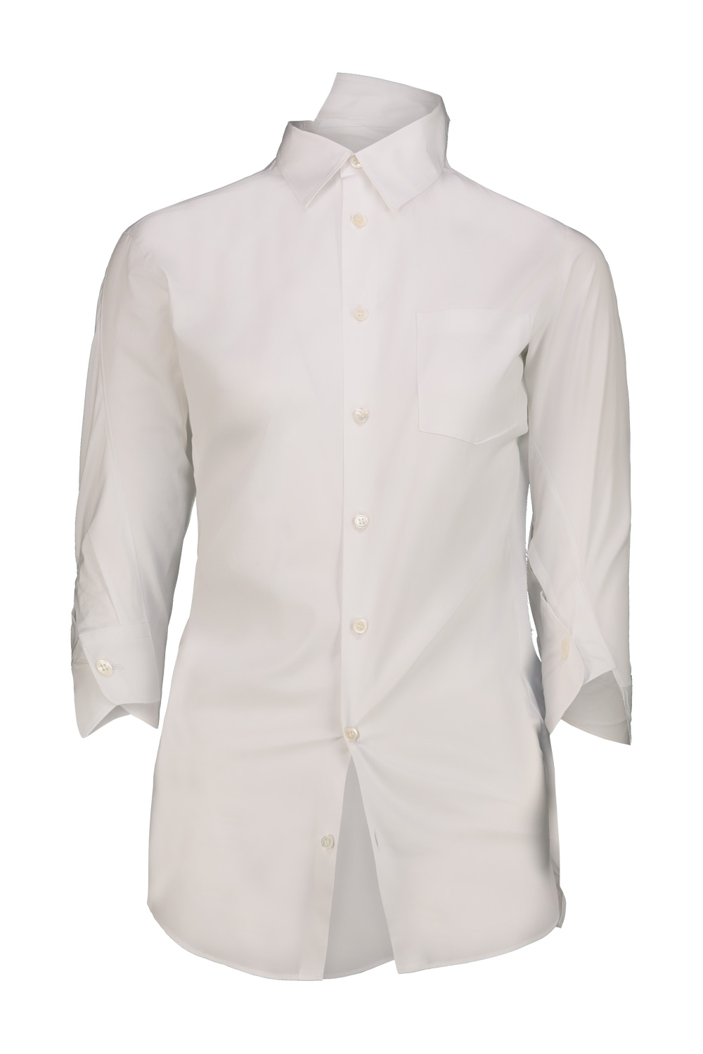 Junya Watanabe deconstructed white short-sleeved shirt.