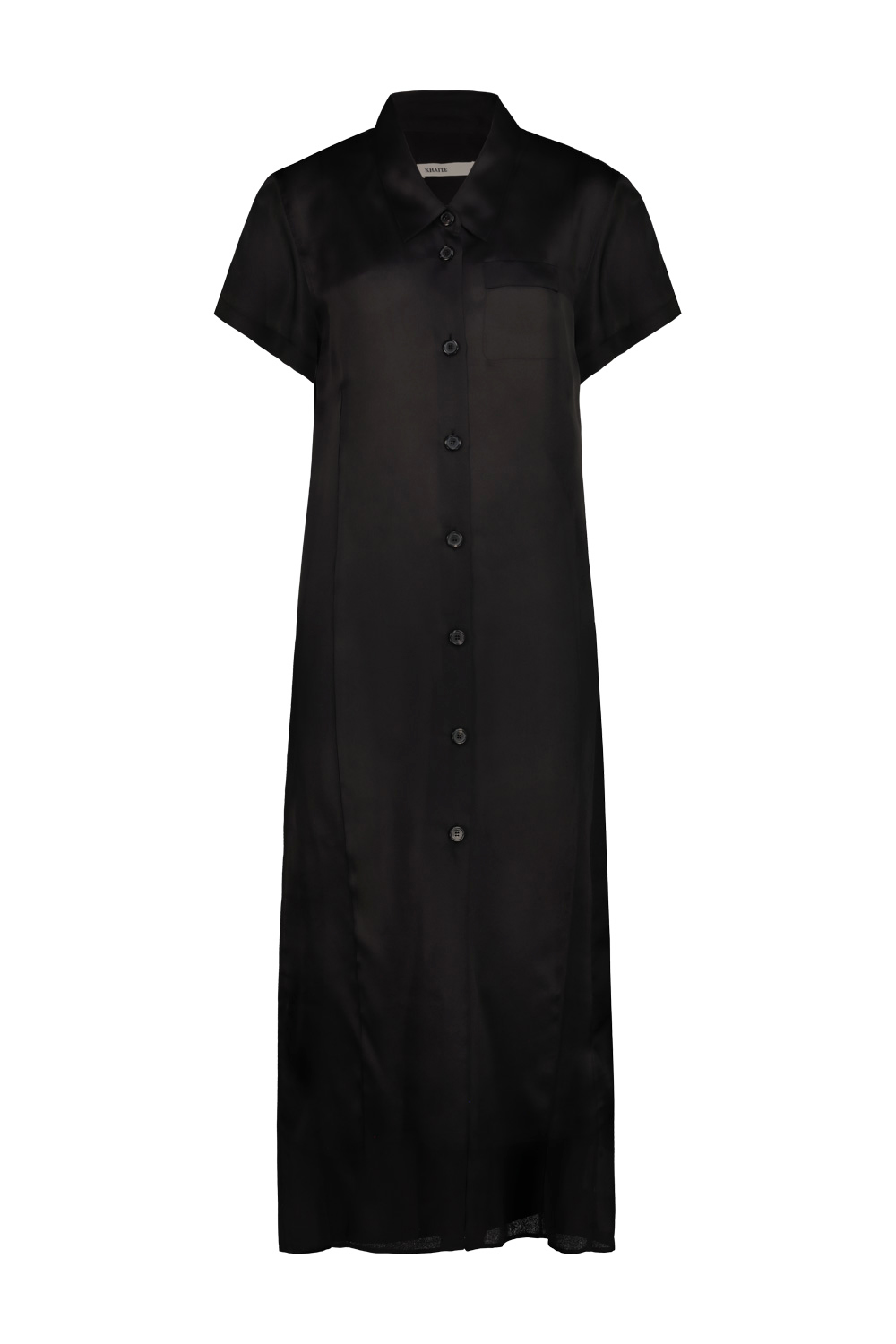 Khaite Effy shirtdress in crisp fluid organza, welt pocket at chest, pintucks at front and back. GTIN code: 54963002 W3002