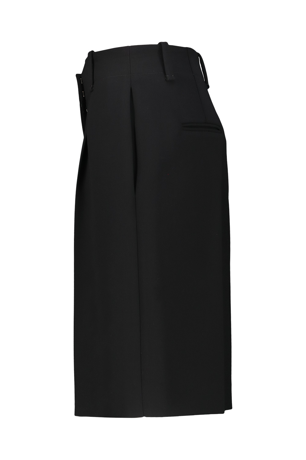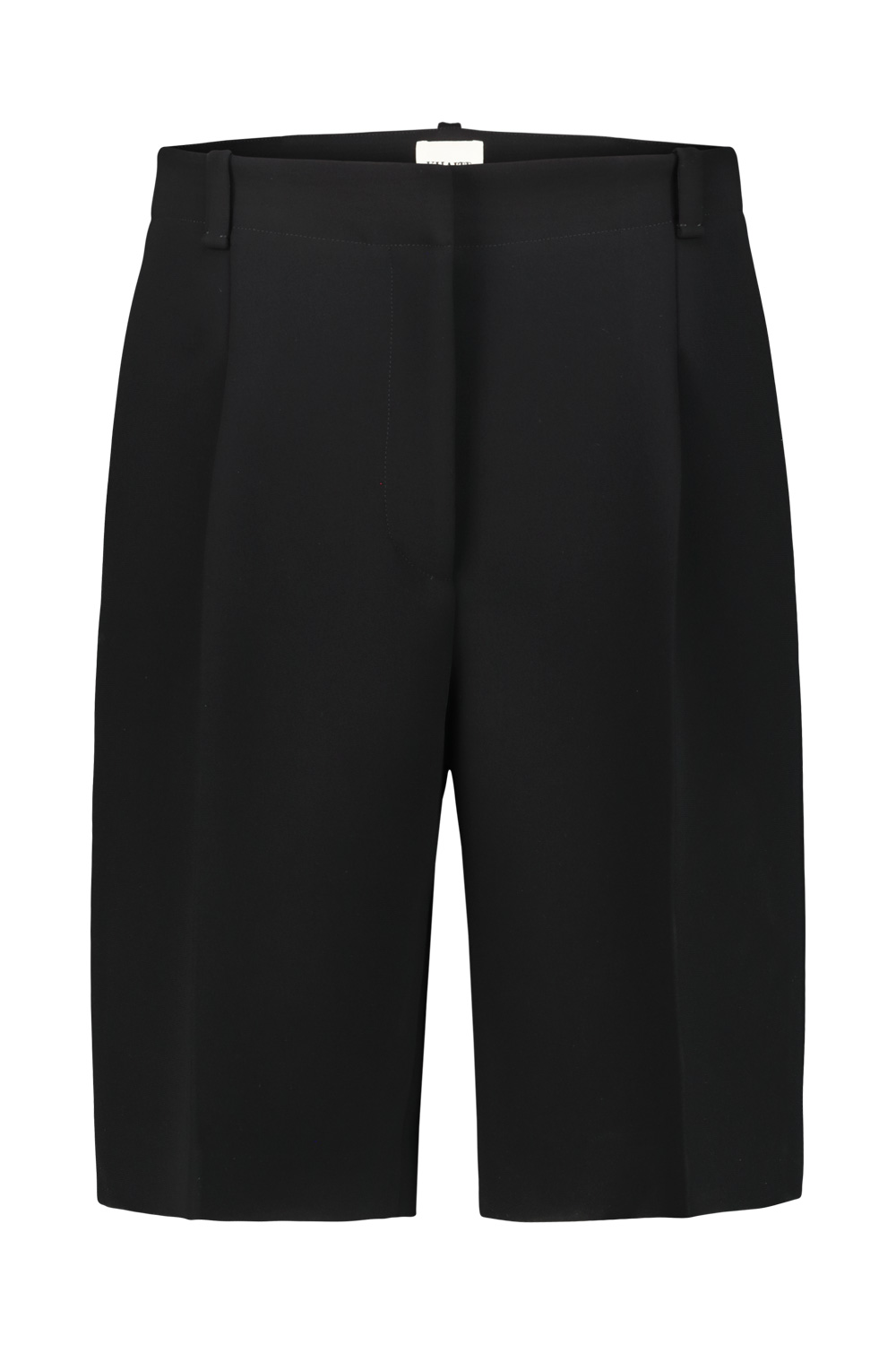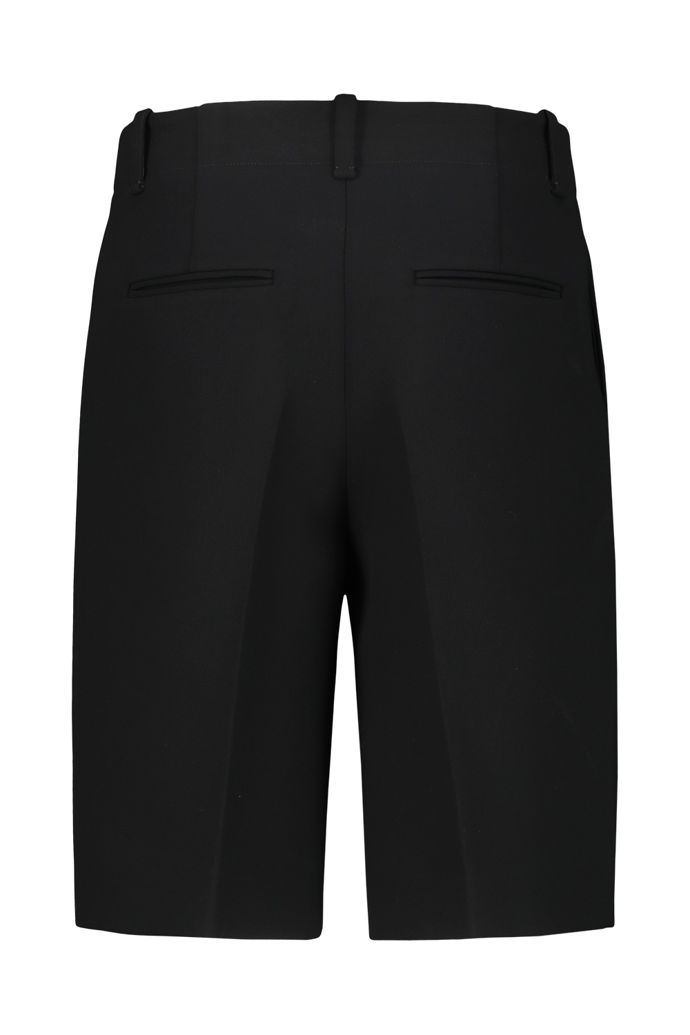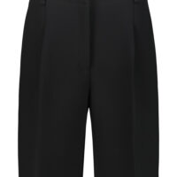 Khaite Laden short in doubleface crepe, low-rise, wide-leg, knee-length, reverse pleats at front, side pockets and back welt pockets.