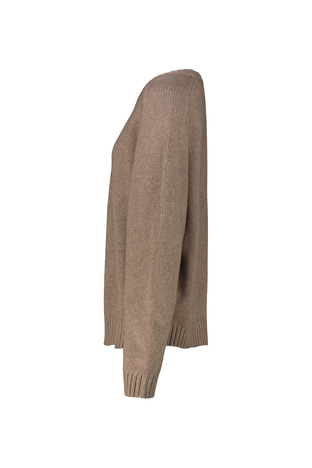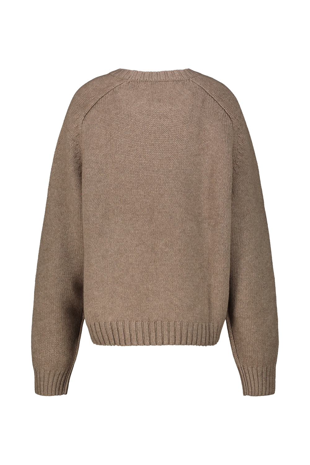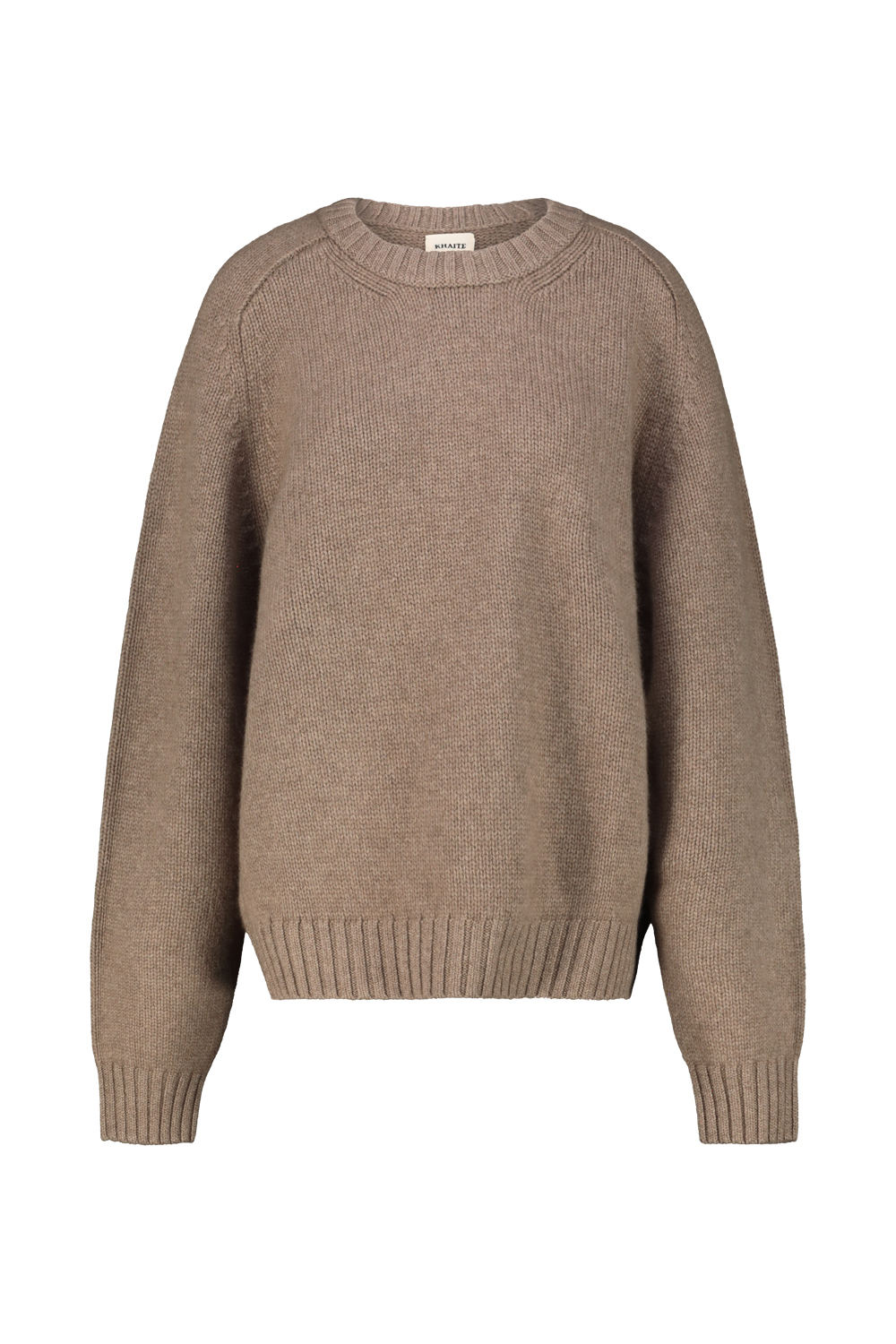 Khaite crewneck cashmere sweater, relaxed fit, extended sleeves, ribbed collar cuff and hem.