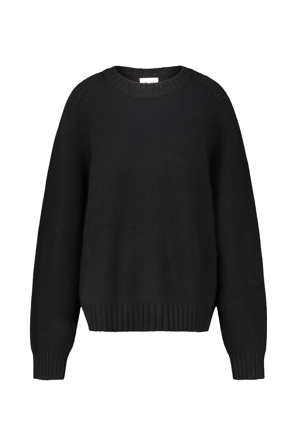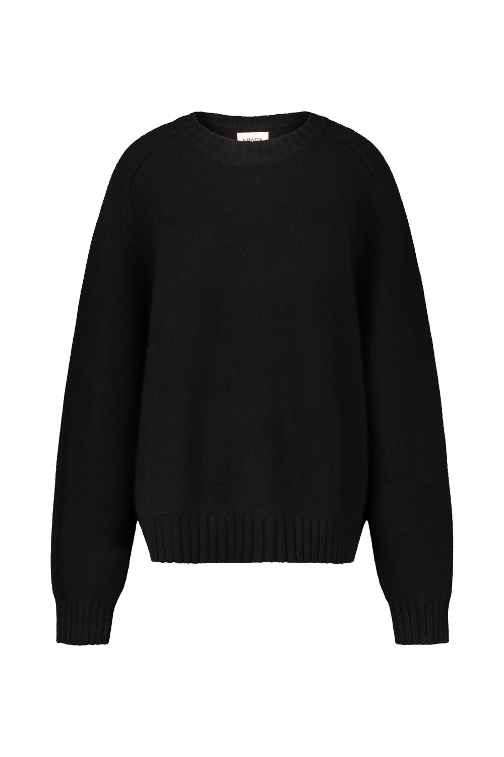 Khaite crewneck cashmere Mae sweater, relaxed fit , extended sleeves, ribbed collar cuff and hem.