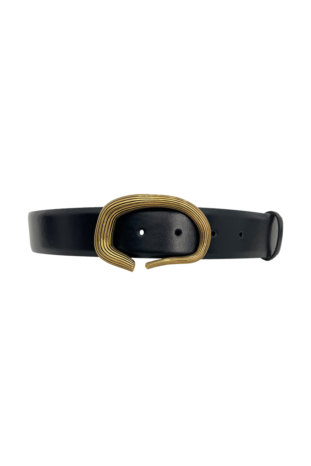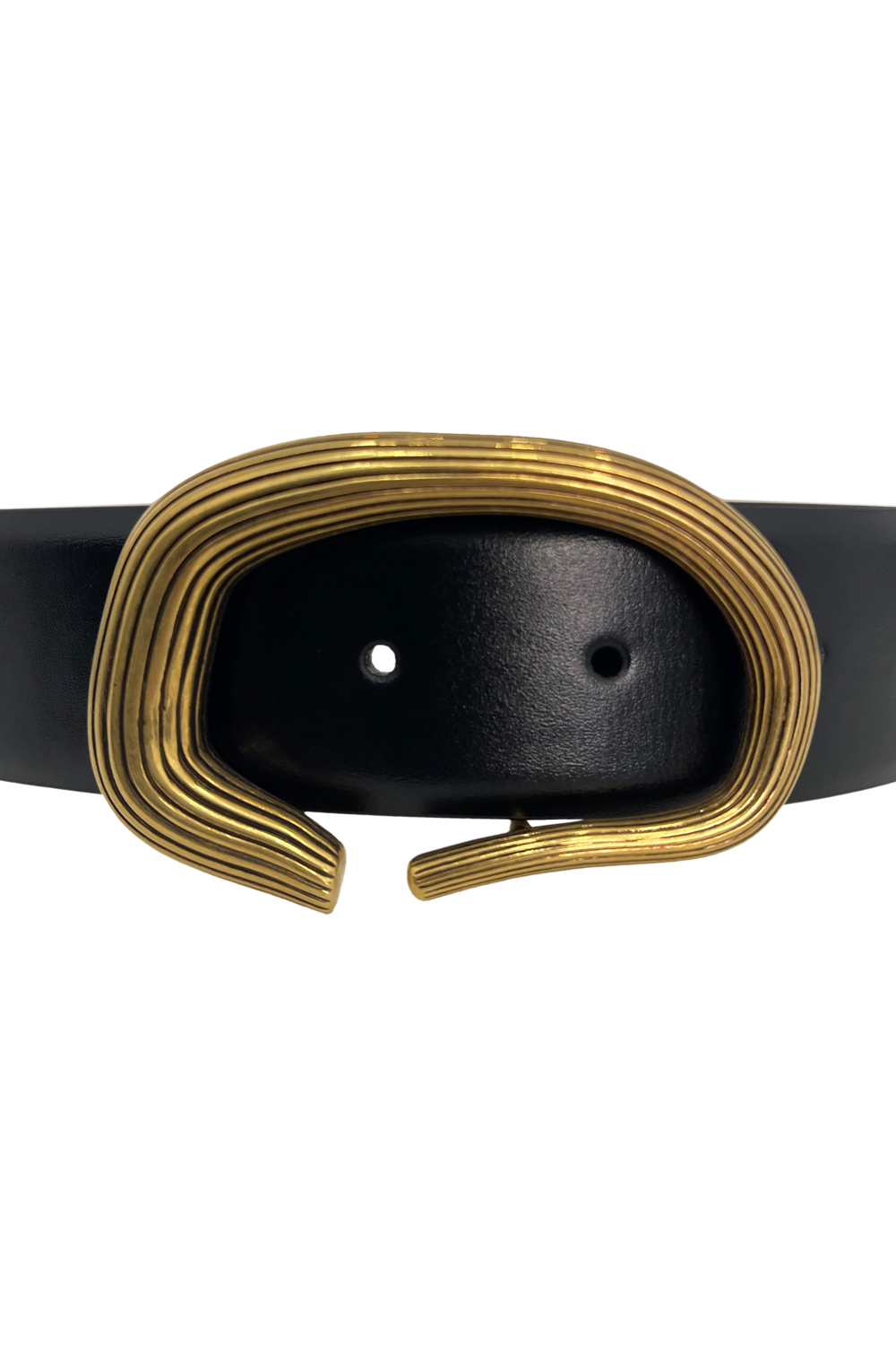 Khaite Santa Fe belt in soft supple calfskin, hardware is crafted in Italy of 18-karat-gold-plated brass with antique finishing.