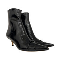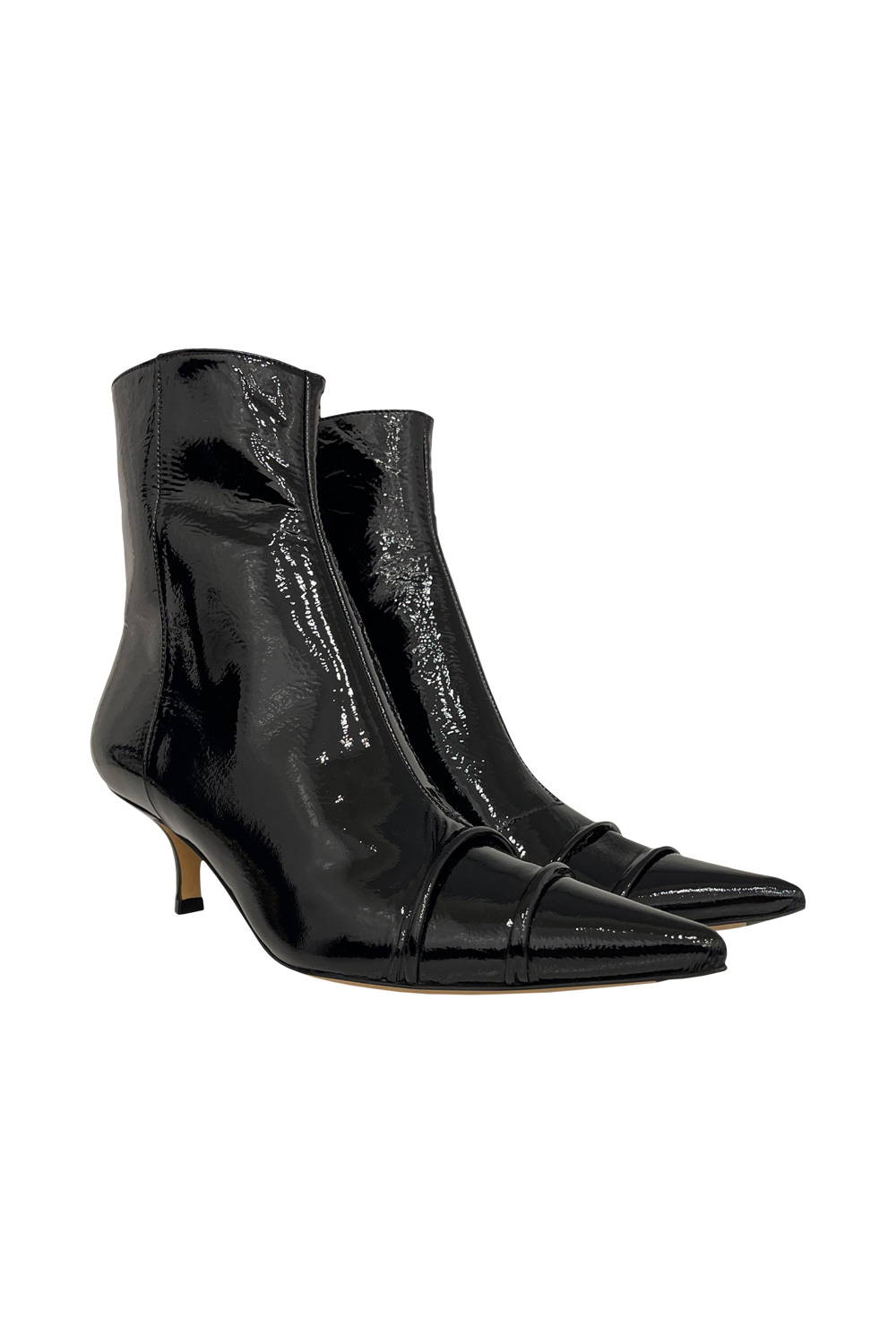 Maison Margiela Kinkies ankle boot in soft patent lambskin, 5.5 cm heel, hand-made pleats.