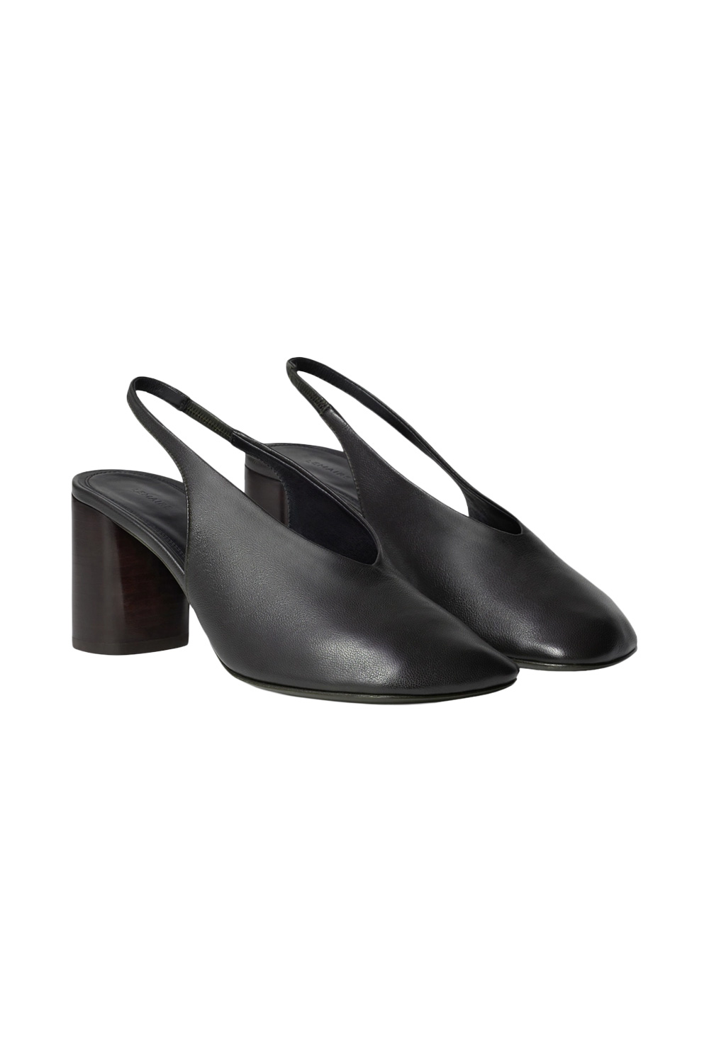 Lemaire gloove slingback pump in soft dark chocolate lamb leather, heel hight 8 cm .