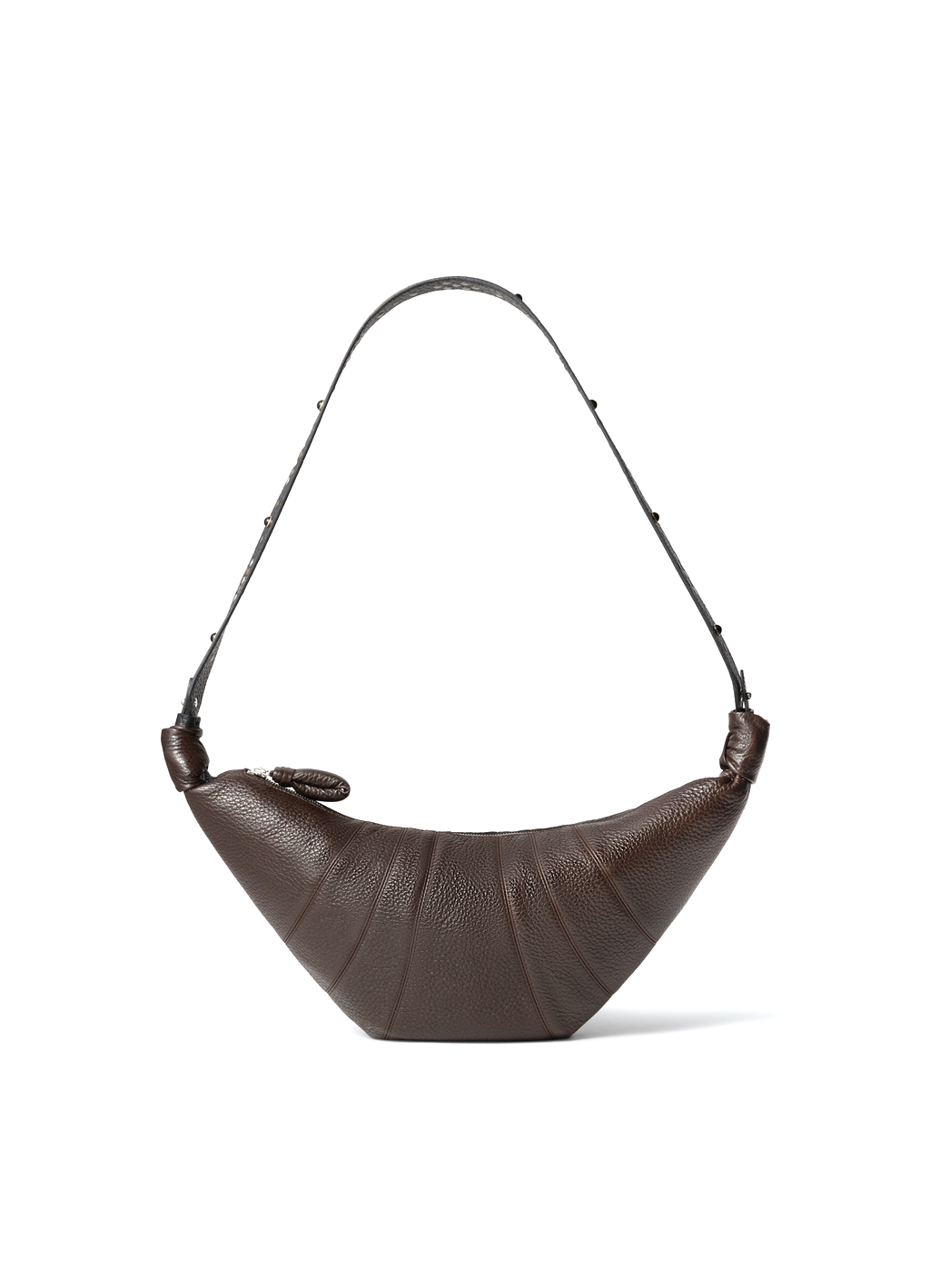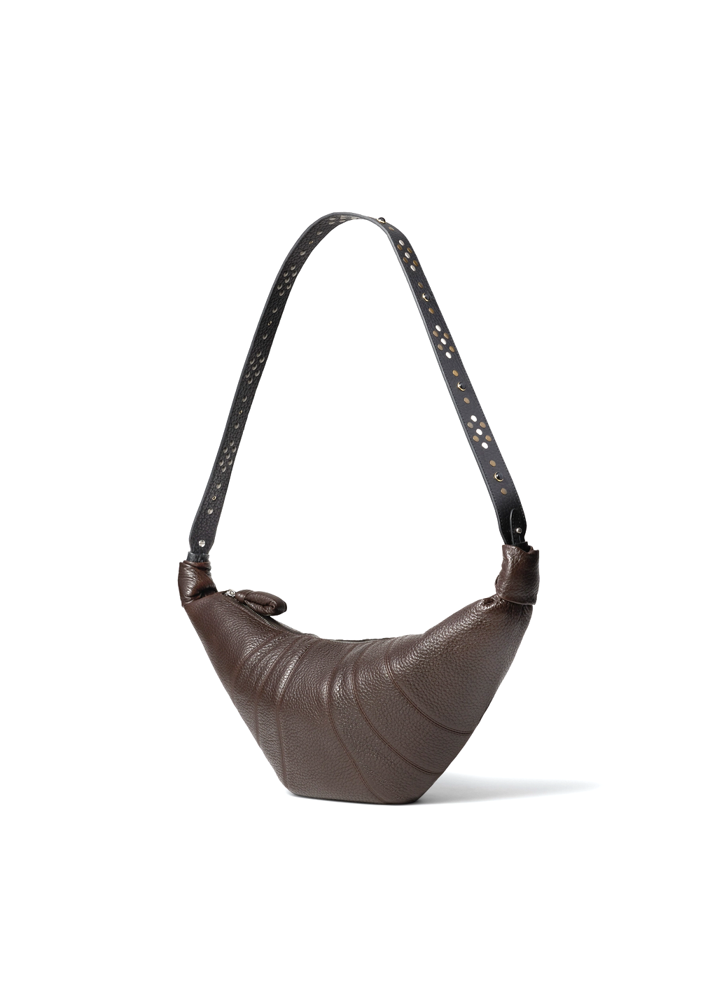 Lemaire western stud medium croissant bag in grained leather with a studded removable strap, zip fastening, canvas lining with interior card pocket.