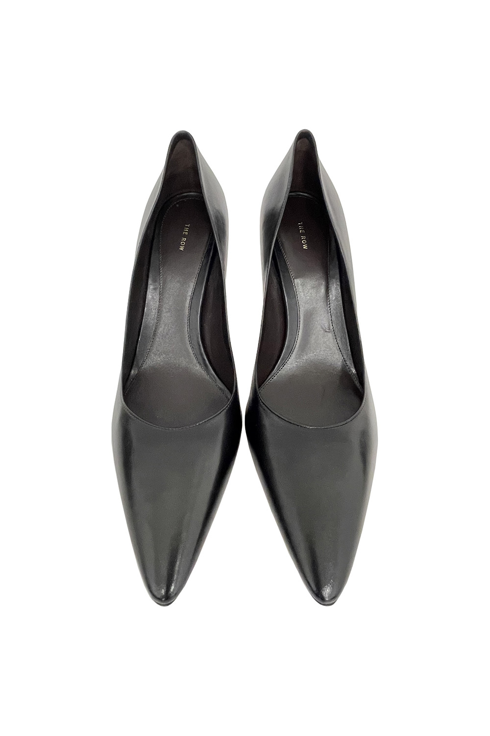 The Row Liisa Pump Two in soft lambskin, pointed toe, leather sole. Fits a half size larger.