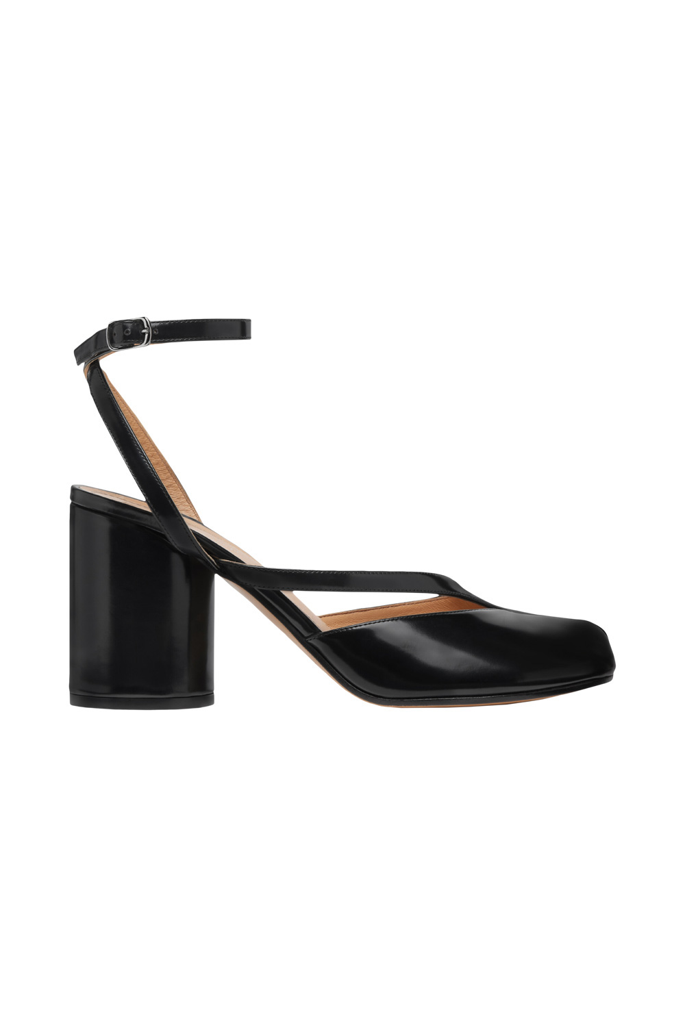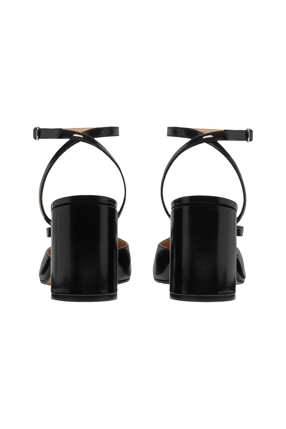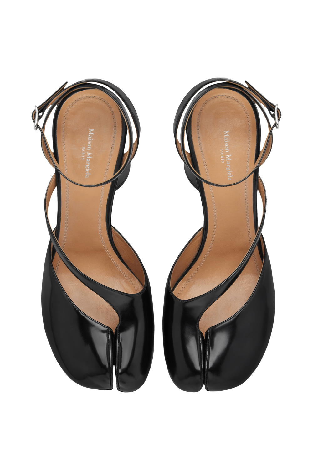 Maison Margiela tabi sandals in brushed leather, 8 cm cylindrical heel, an adjustable ankle strap.