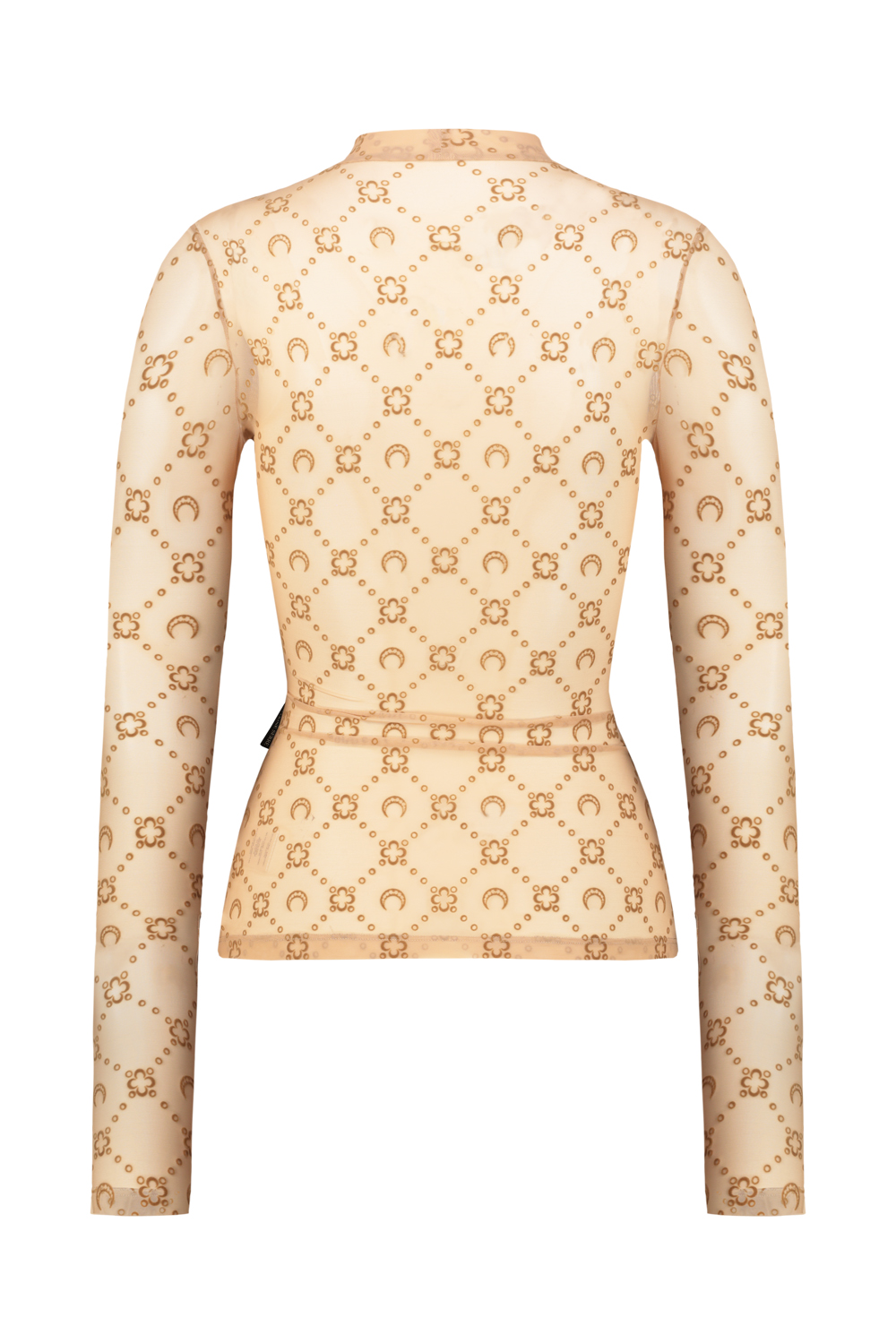Marine Serre high-neck collar top in regenerated mesh fabric with all over flock print.