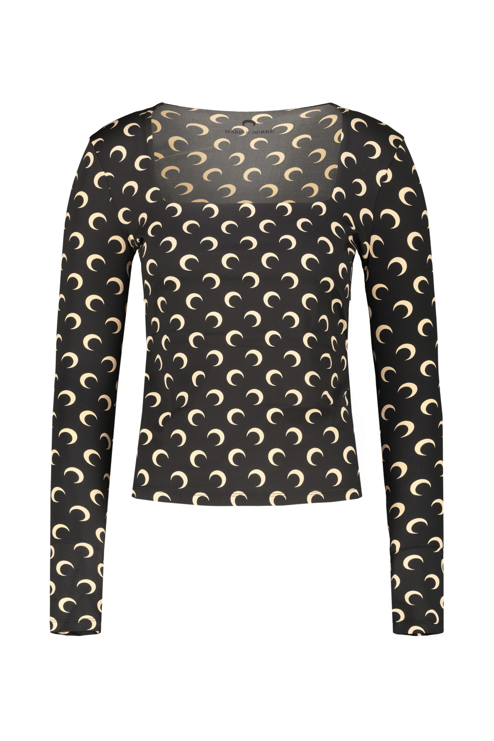 Marine Serre long sleeve top with square neck in moon printed jersey.