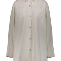 Courrèges Mega Size Dry Denim Shirt, pockets in front, classic buttons and strap in the back.