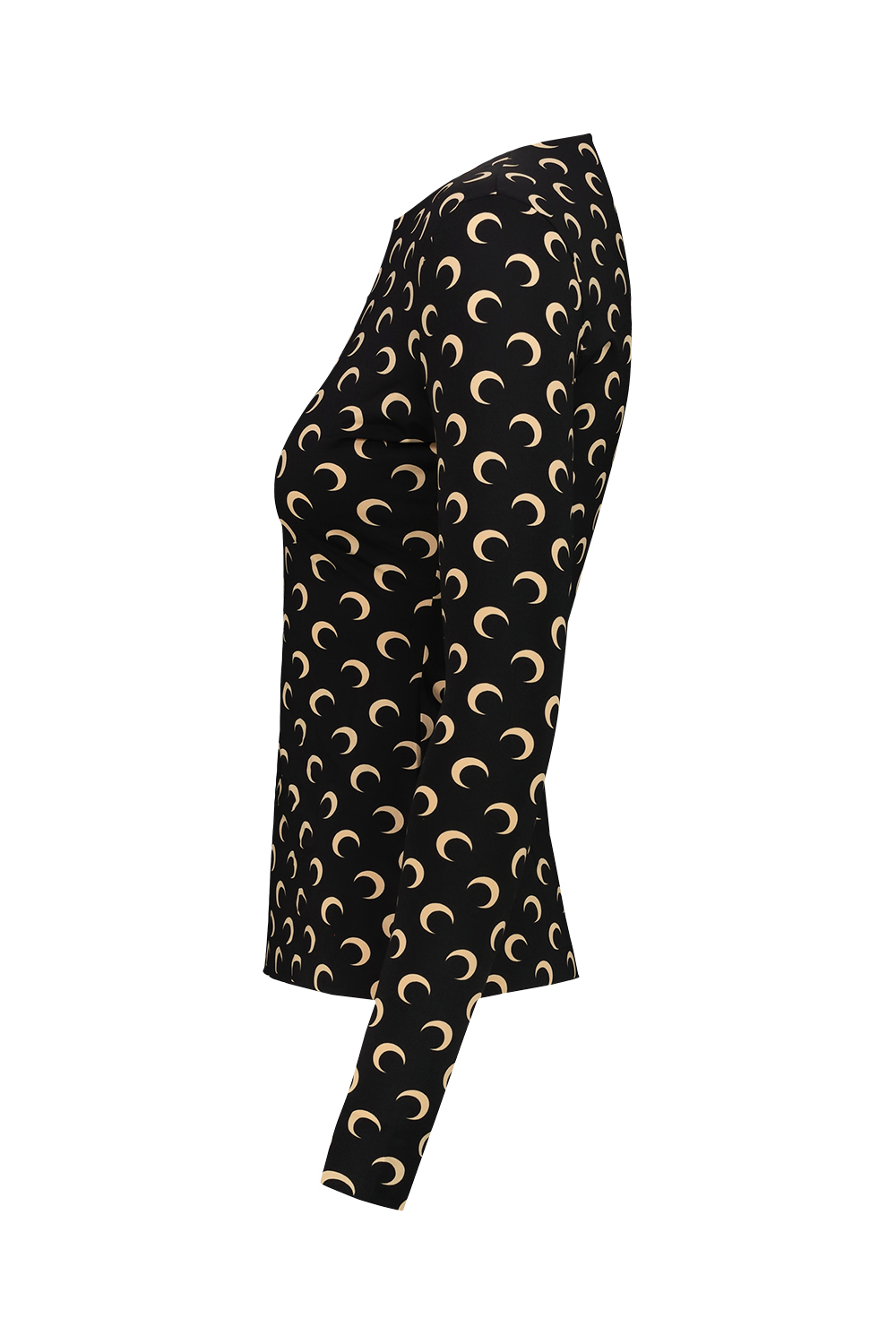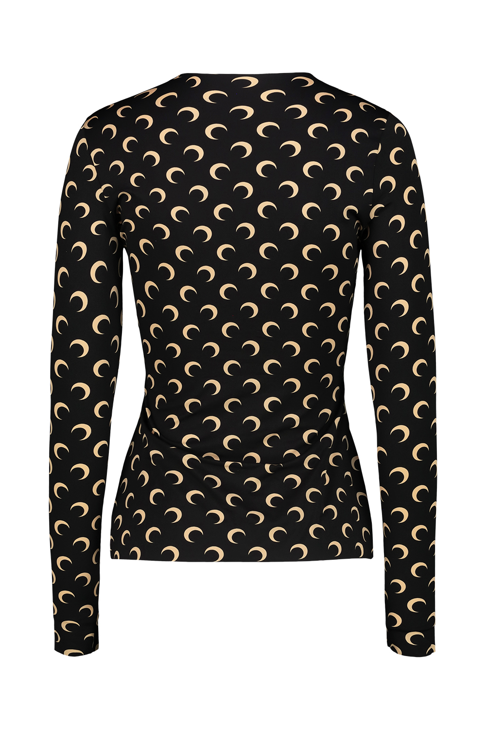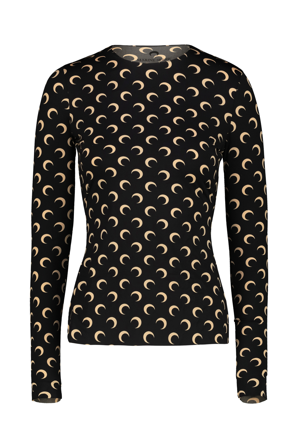Marine Serre crewneck long sleeve second skin t-shirt in recycleed all over moon print.