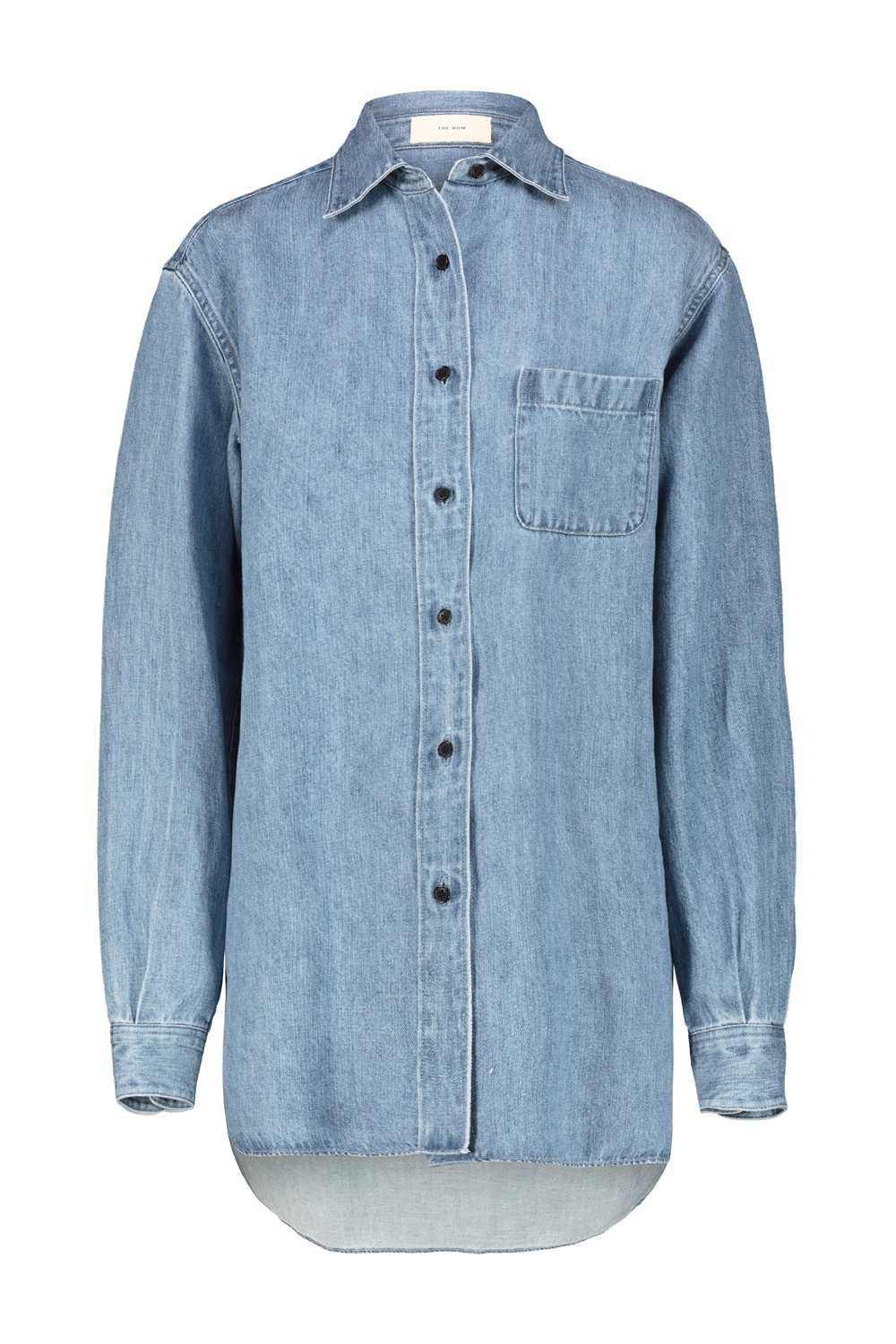 The Row Nesson shirt in soft linen denim with front patch pocket, slim back yoke with side pleats, relaxed fit. GTIN code: 8740 W3654