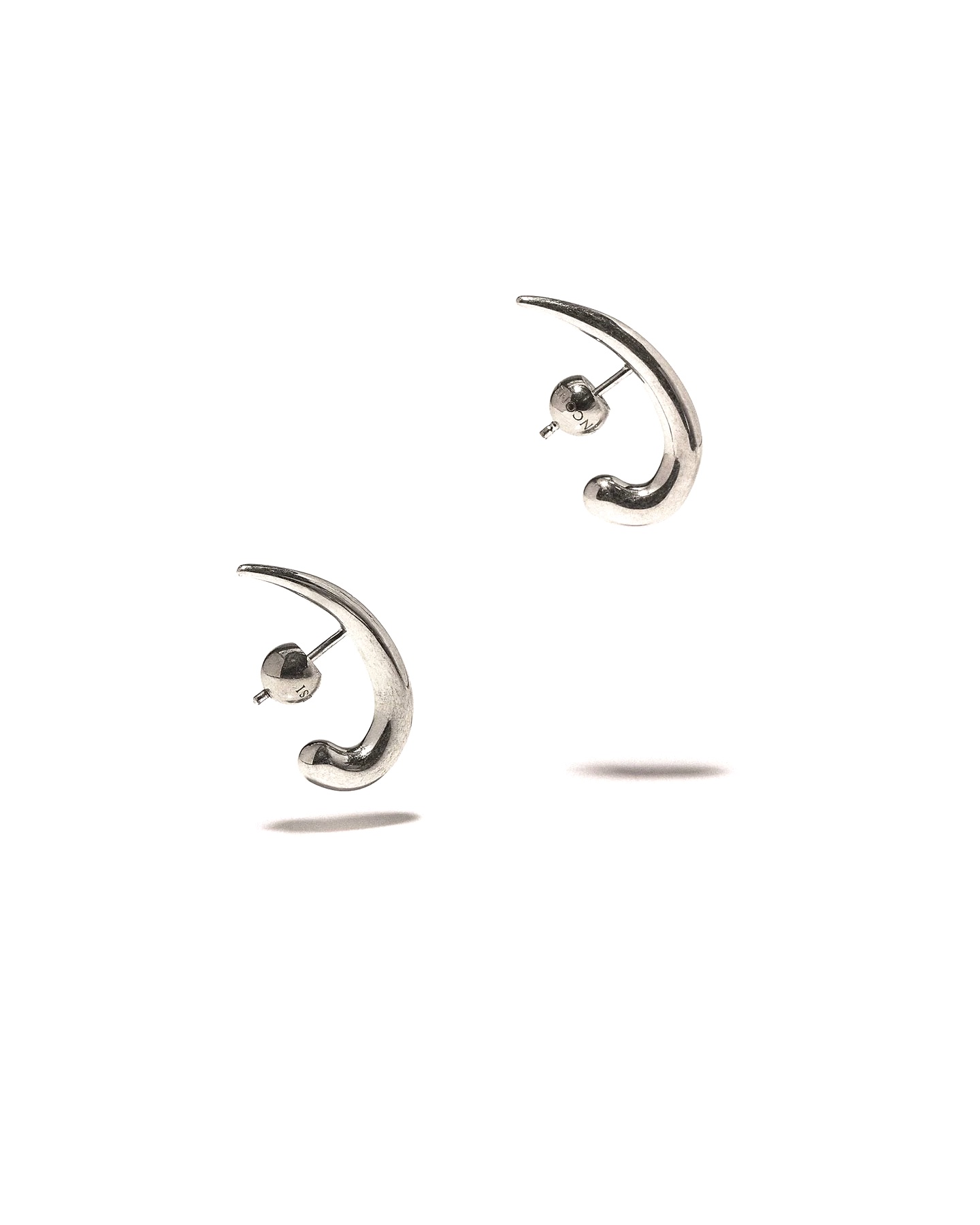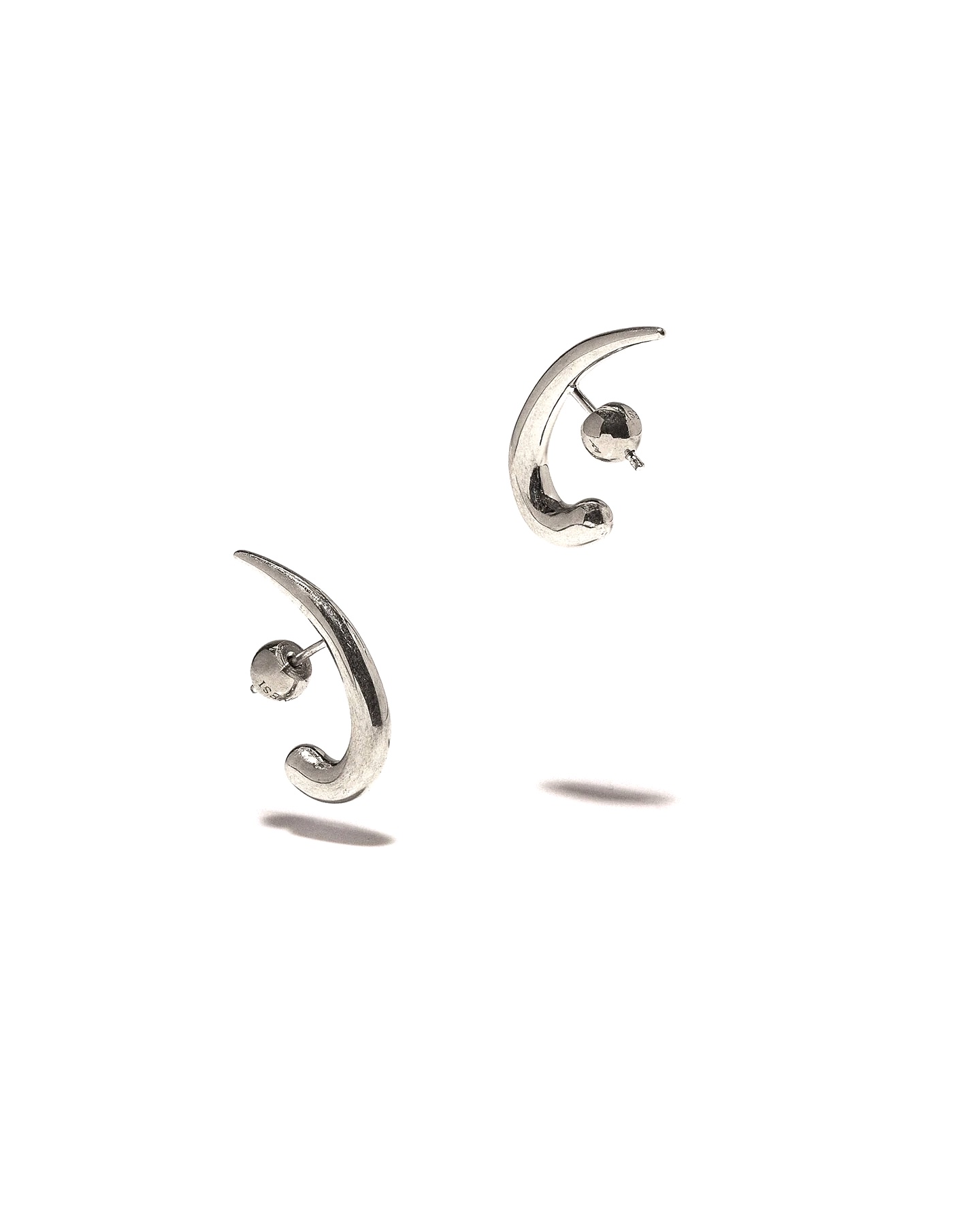 Panconesi Spada earring in rhodium plated brass, rounded shape that ends in a point, logoed sphere as closure.