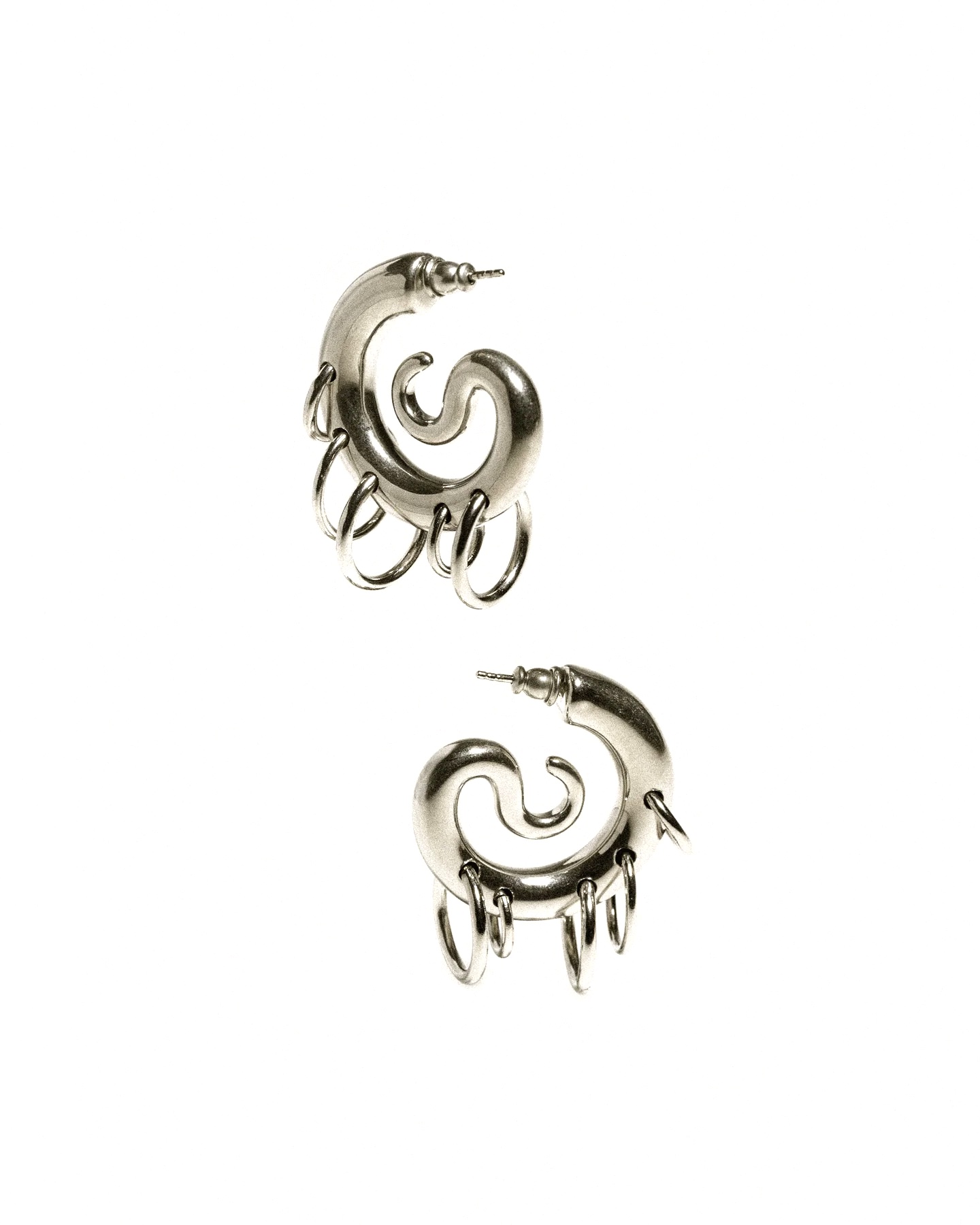 Panconesi pierced serpent hoops in rhodium pleated copper with piercing detail. gtin code: CAO EA027 P