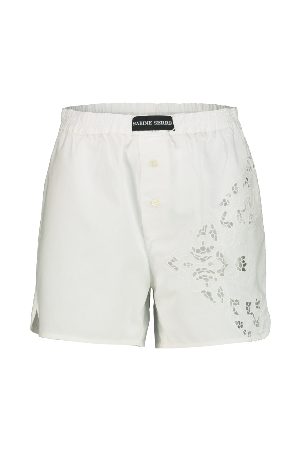 Marine Serre short in regenerated household linen.