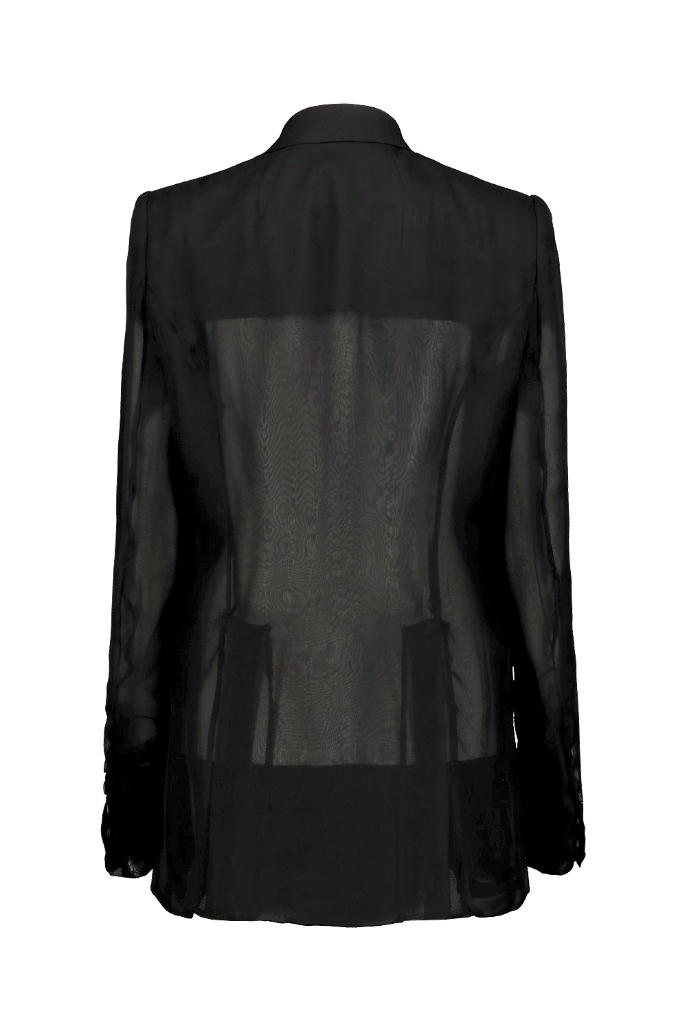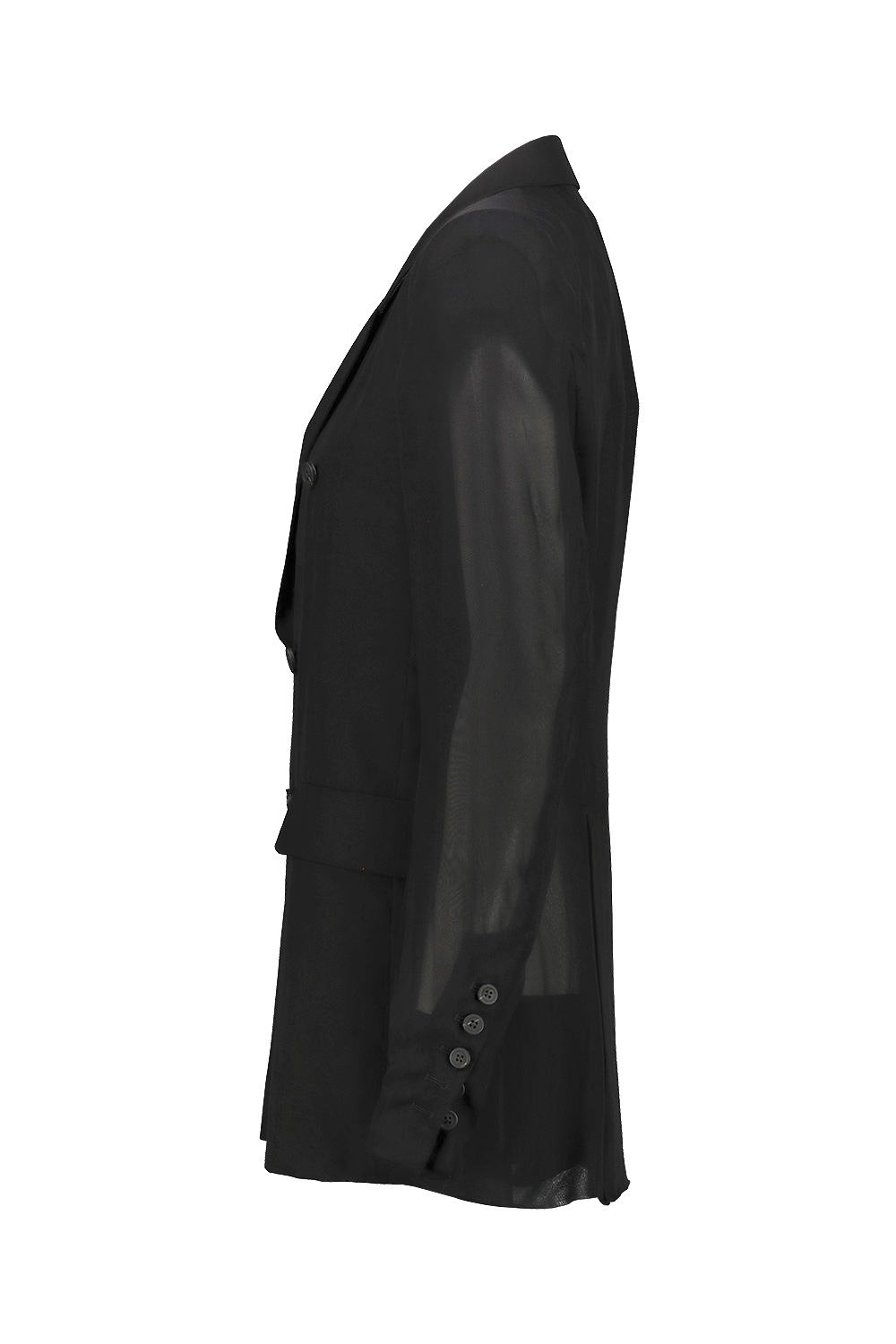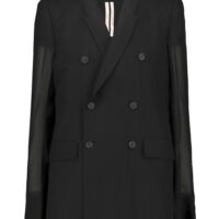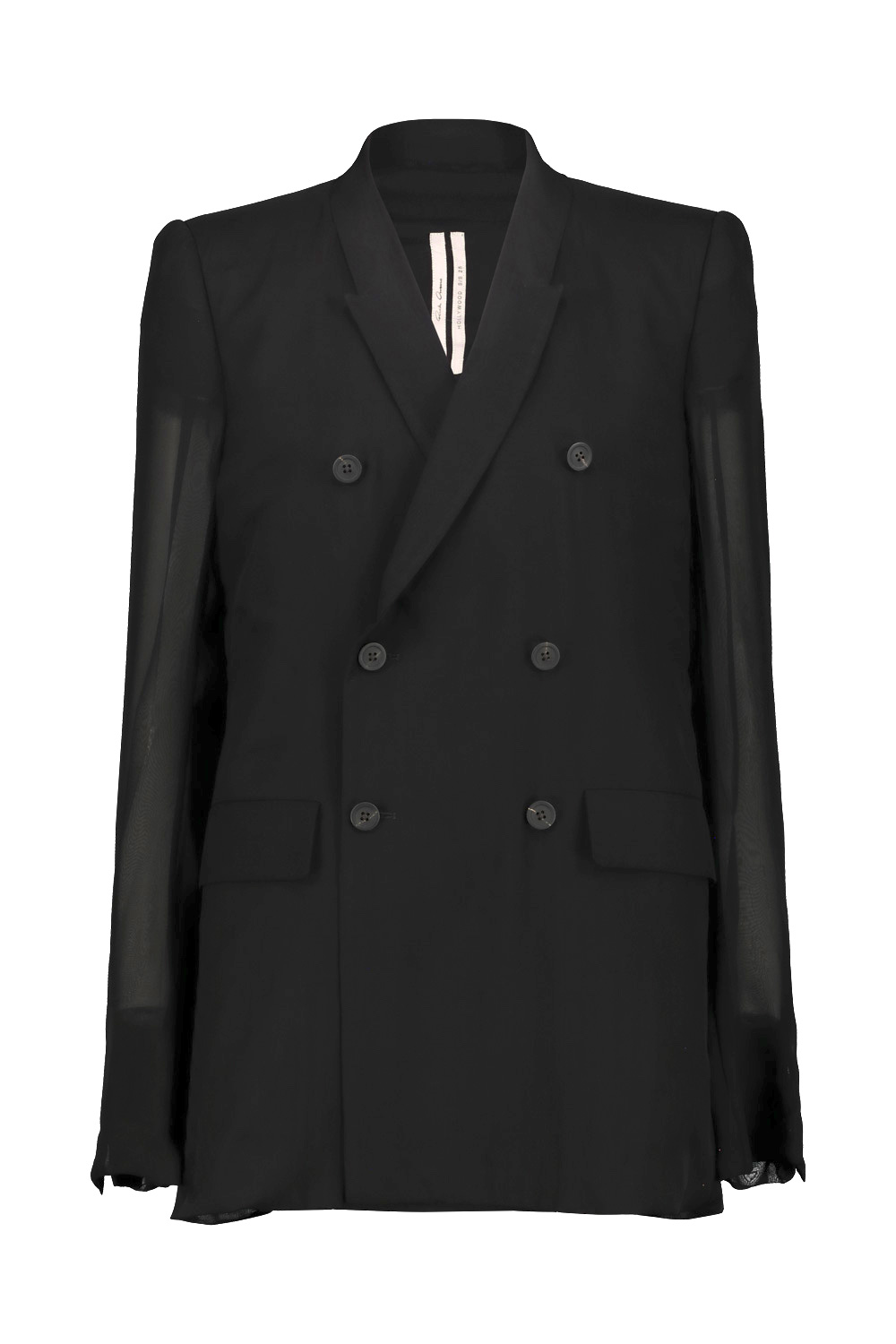 Rick Owens classic double-breasted blazer in silk chiffon, two front flap pockets, two back vents.