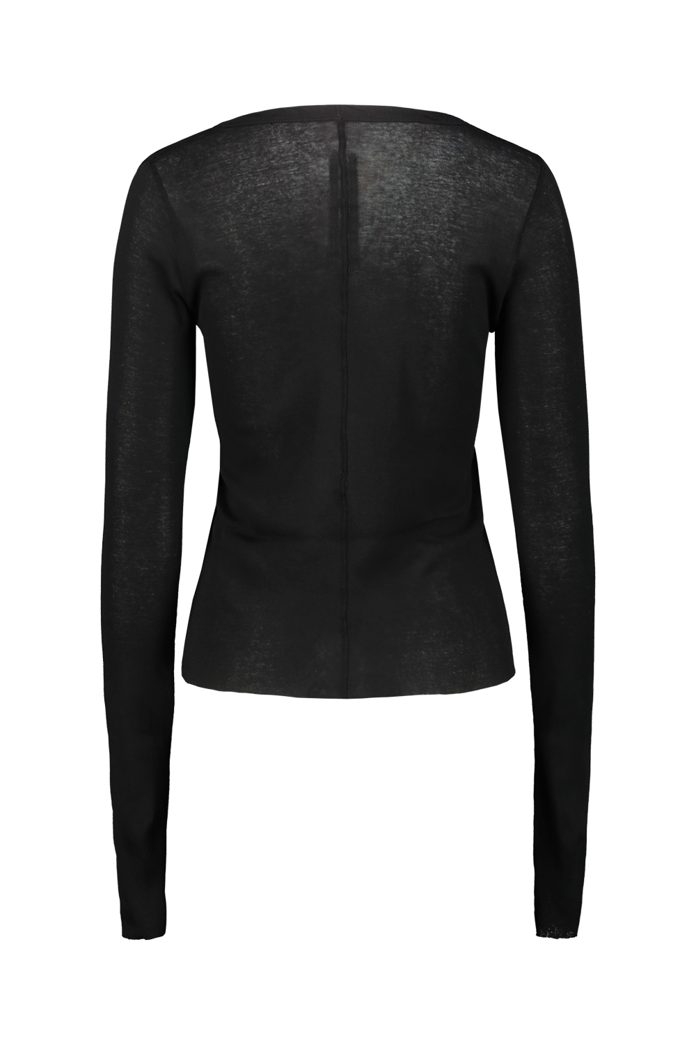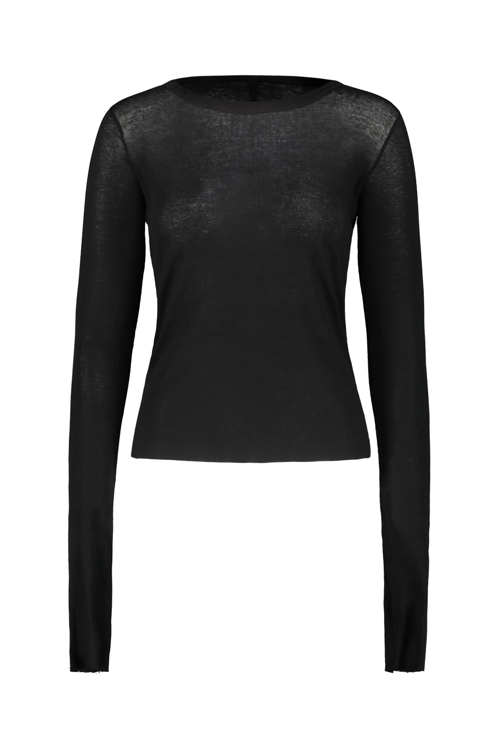 Rick Owens long sleeve cropped t-shirt in cotton with raw cut hem.