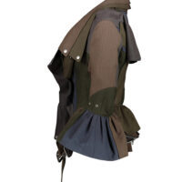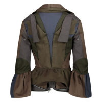 Junya Watanabe ruffle-hem jacket with belt, unstructured as if several jackets were assembled together, tight fit
