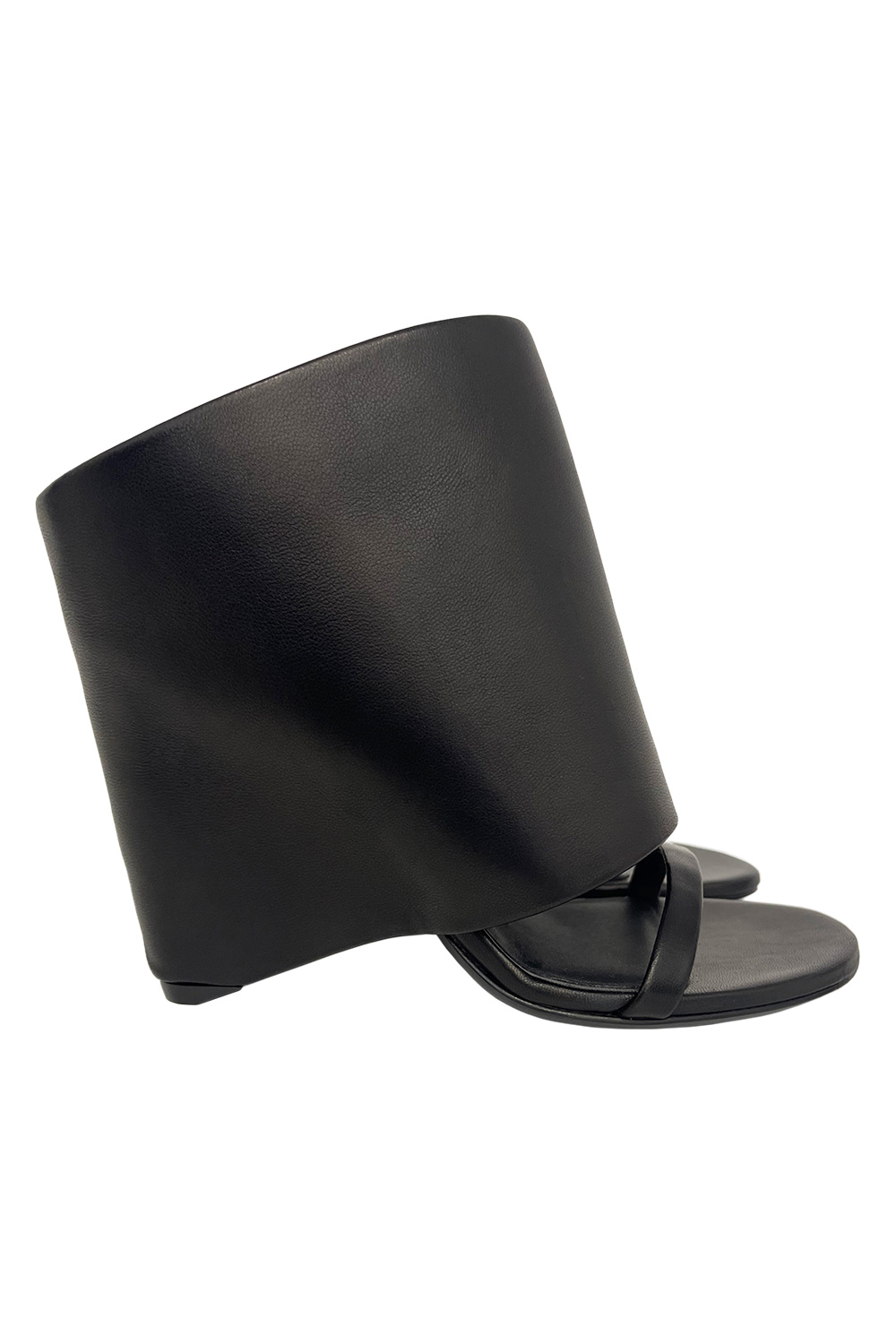 Courrèges sandals Oblique wedged in lambskin leather, thin strap in front, metallic logo at the back. Heel height : 90 mm