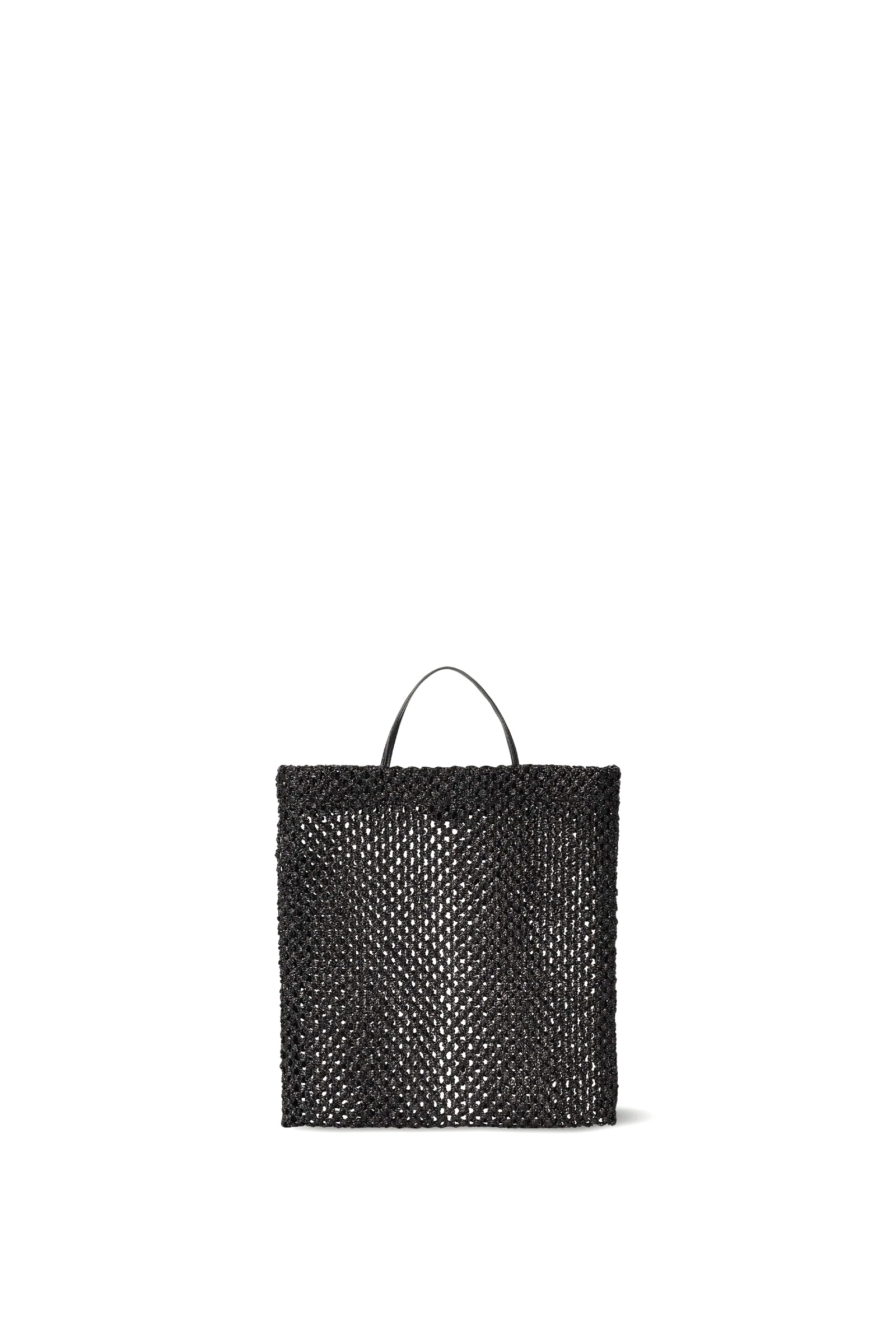 The Row Barn mini tote in faffia, leather handles and open top, open crochet technique, hand made. GTIN CODE: W2075 WL6