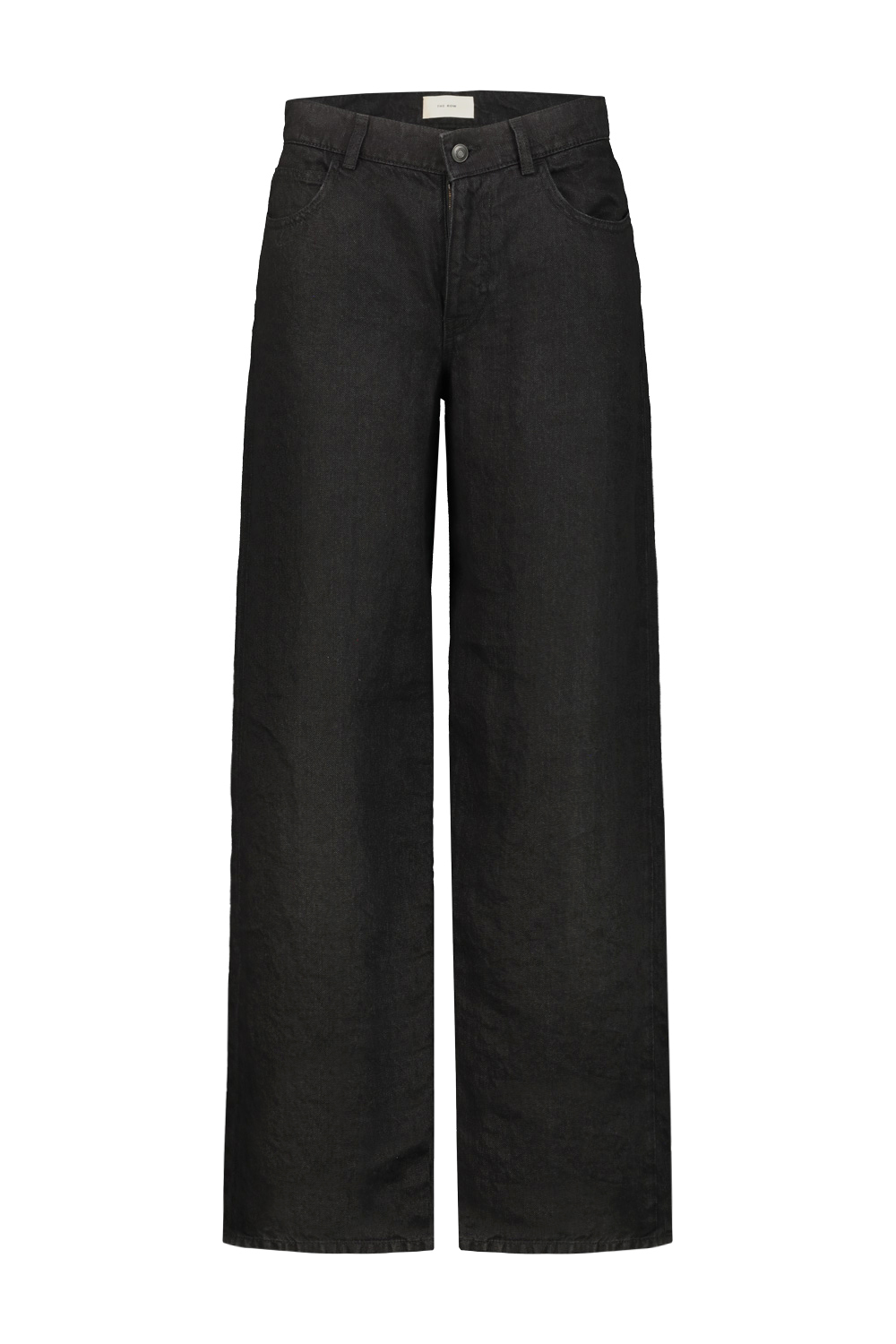 The Row Eglitta mid-rise jean in linen, straight fit, tonal topstitching, classic 5-pocket construction.
