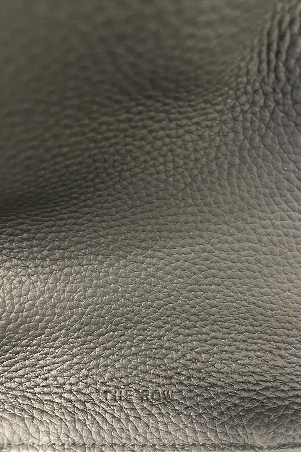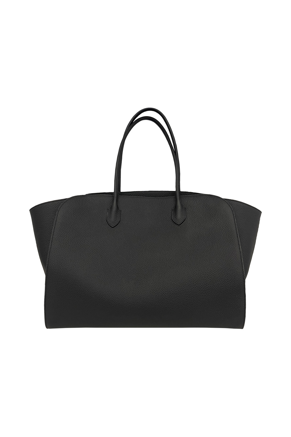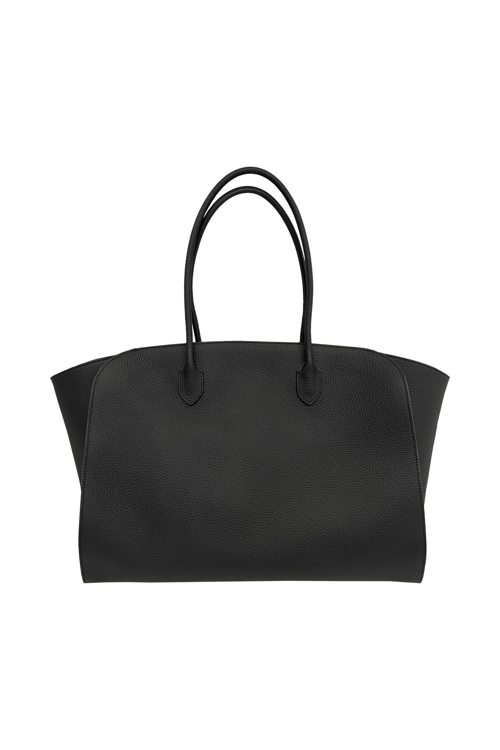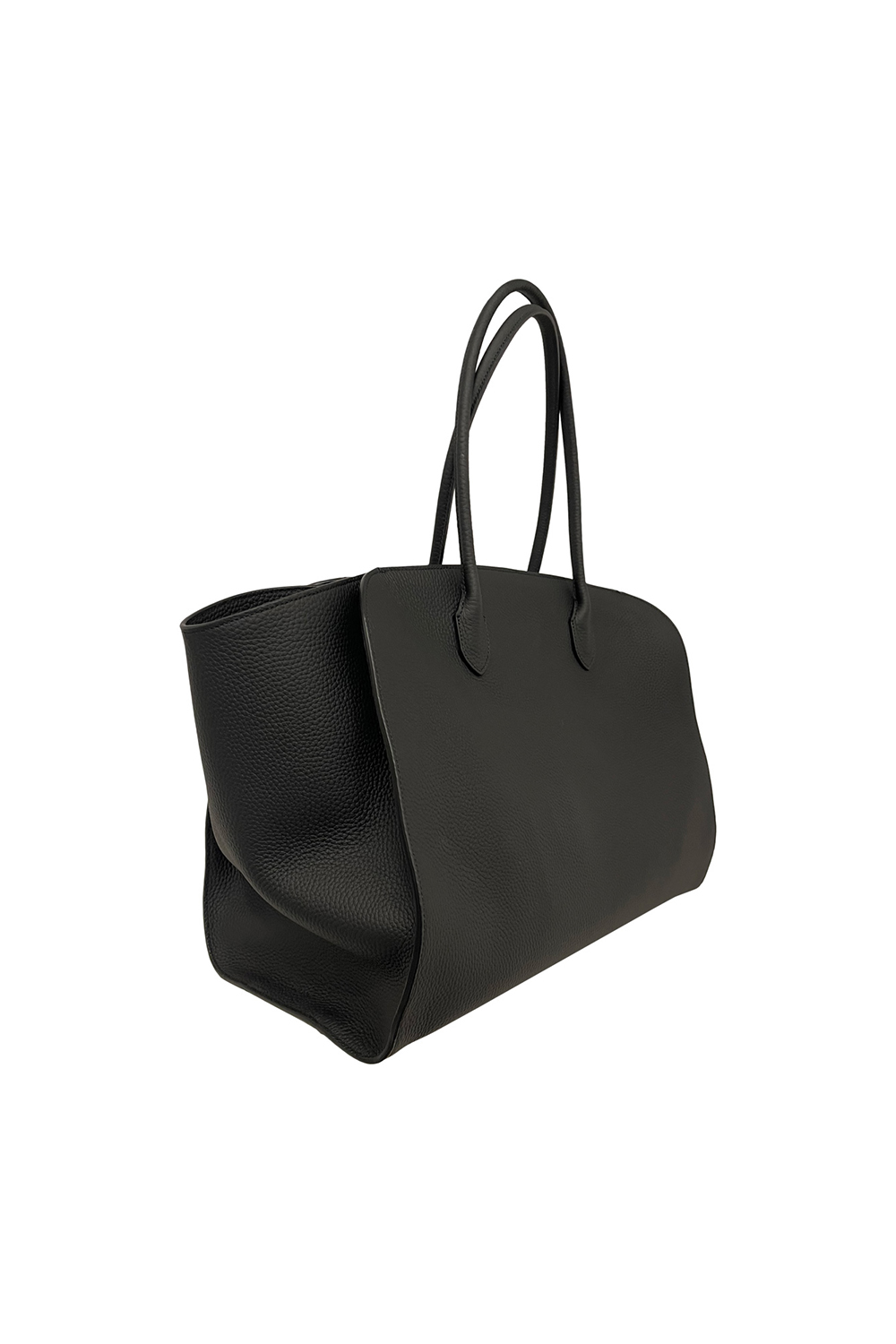 The Row Marlo tote bag in matte grain calf leather, tubular handles and gusseted side panels.