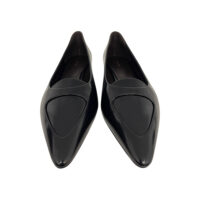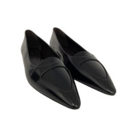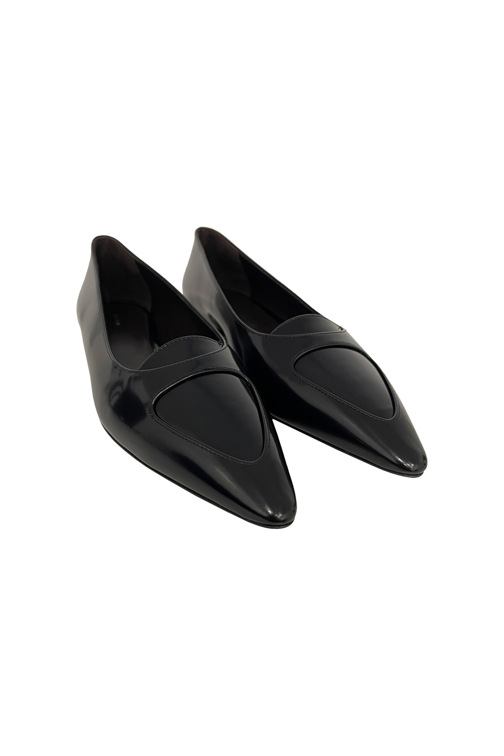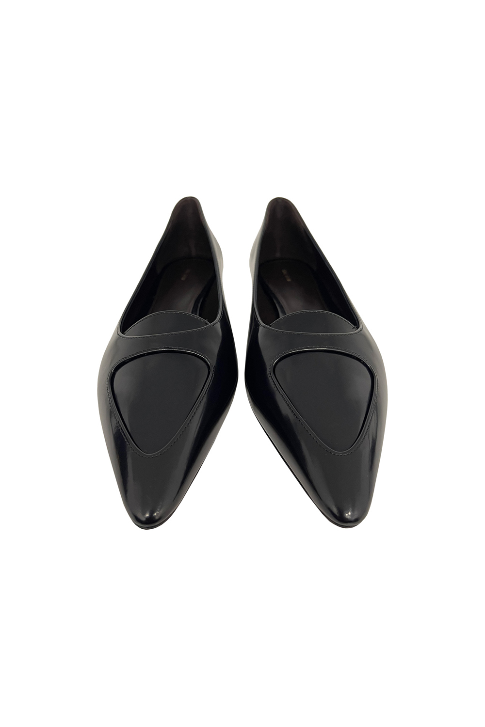 The Row Viv ballerina in shiny brushed calfskin with layered upper detail, leather sole.