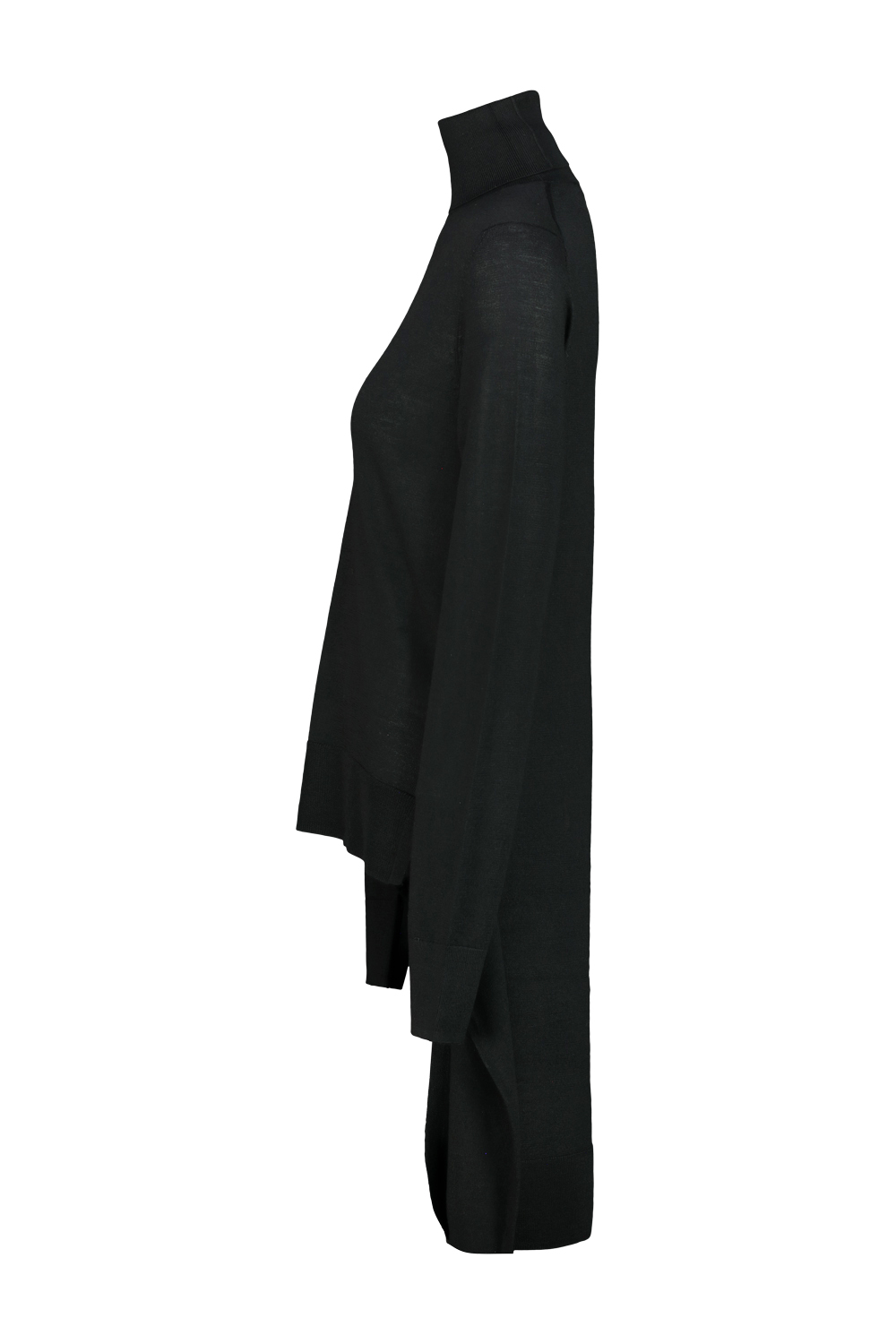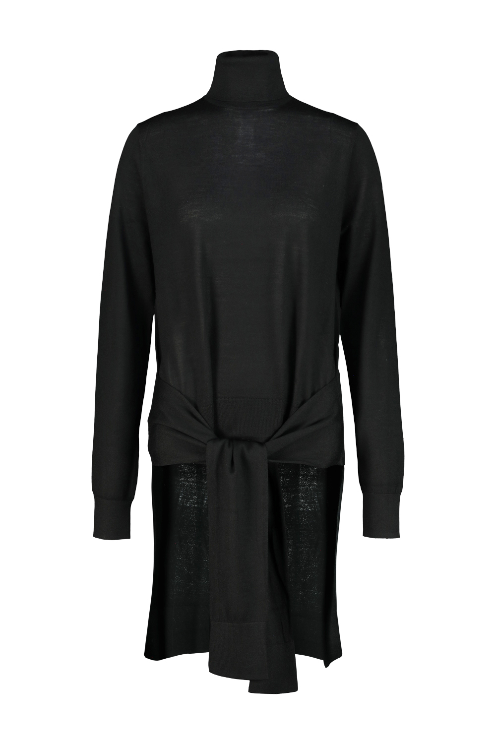 Toteme double sleeve turtleneck in wool and silk blend knit, additional sleeves at the hips that create the illusion of a second sweater tied around the waist.