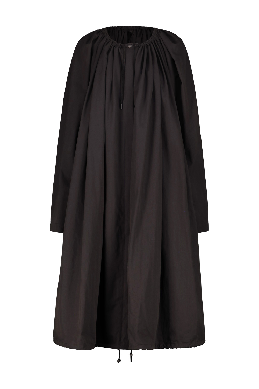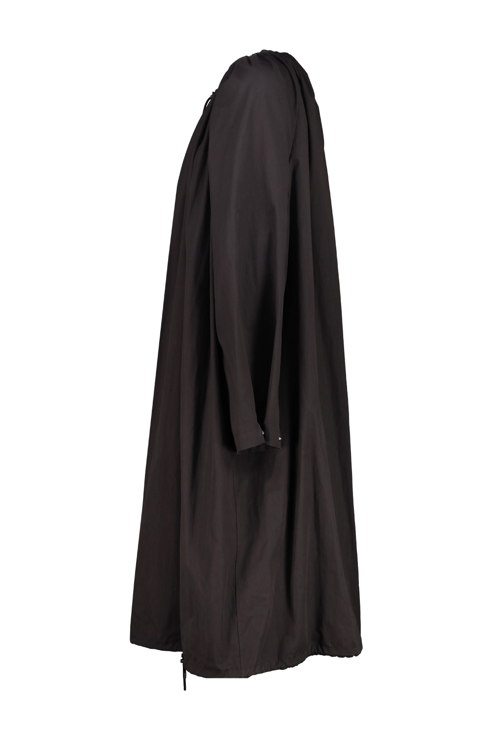 Toteme gathered parachute coat in cotton, gathered at the neck and hem with drawstrings, zipped closure with snaps at the collar, side pockets .