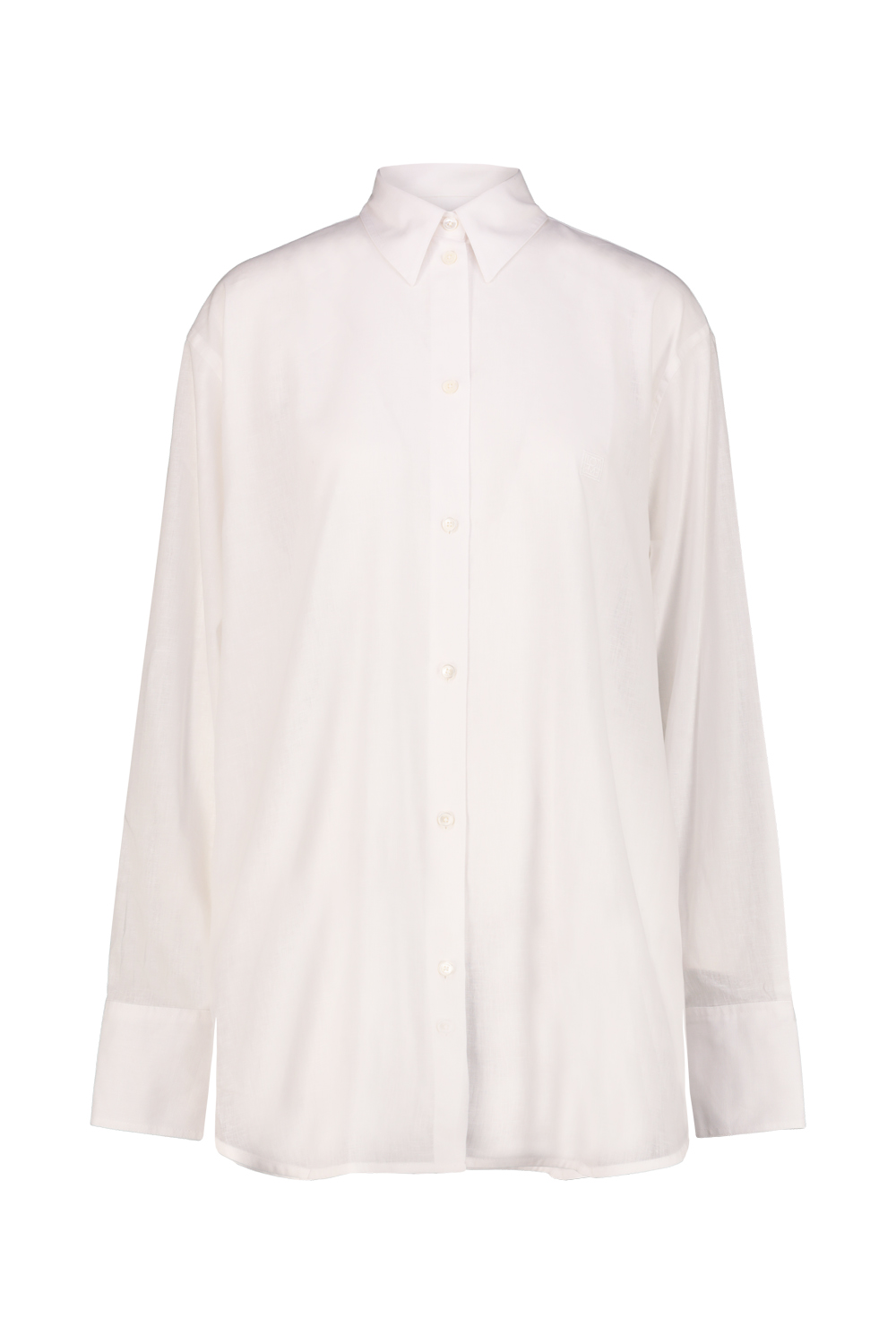 Toteme oversized summer shirt in cotton and linen blend, embroidered logo on the front. gtin code: 253 WRT0522 FB0458 047