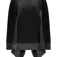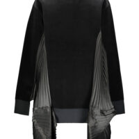 Junya Watanabe velvet crewneck sweatshirt with batwing sleeves in shiny pleated fabric.