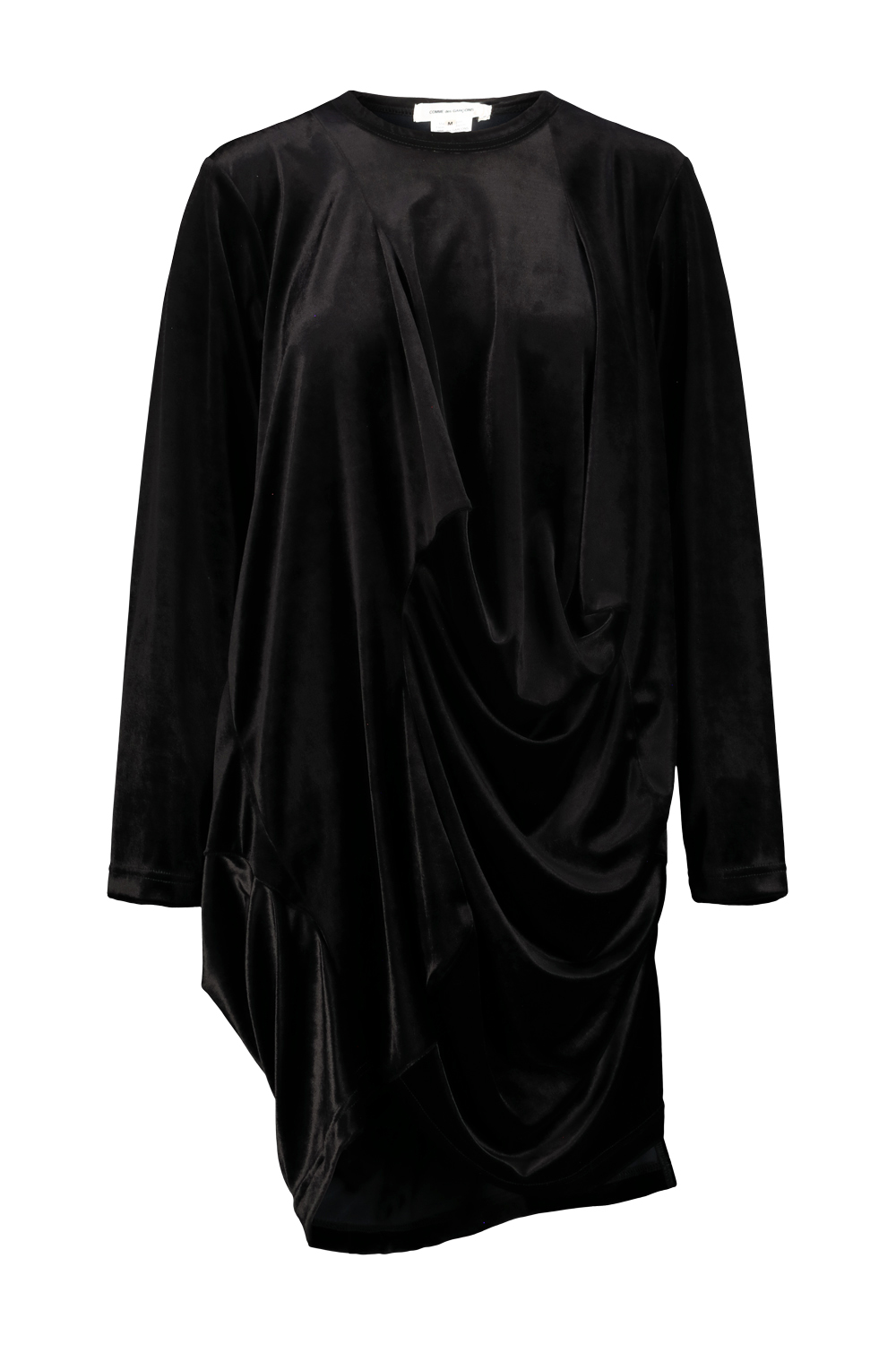 Comme des Garcons mini dress or long top in velvet with irregular draped details.