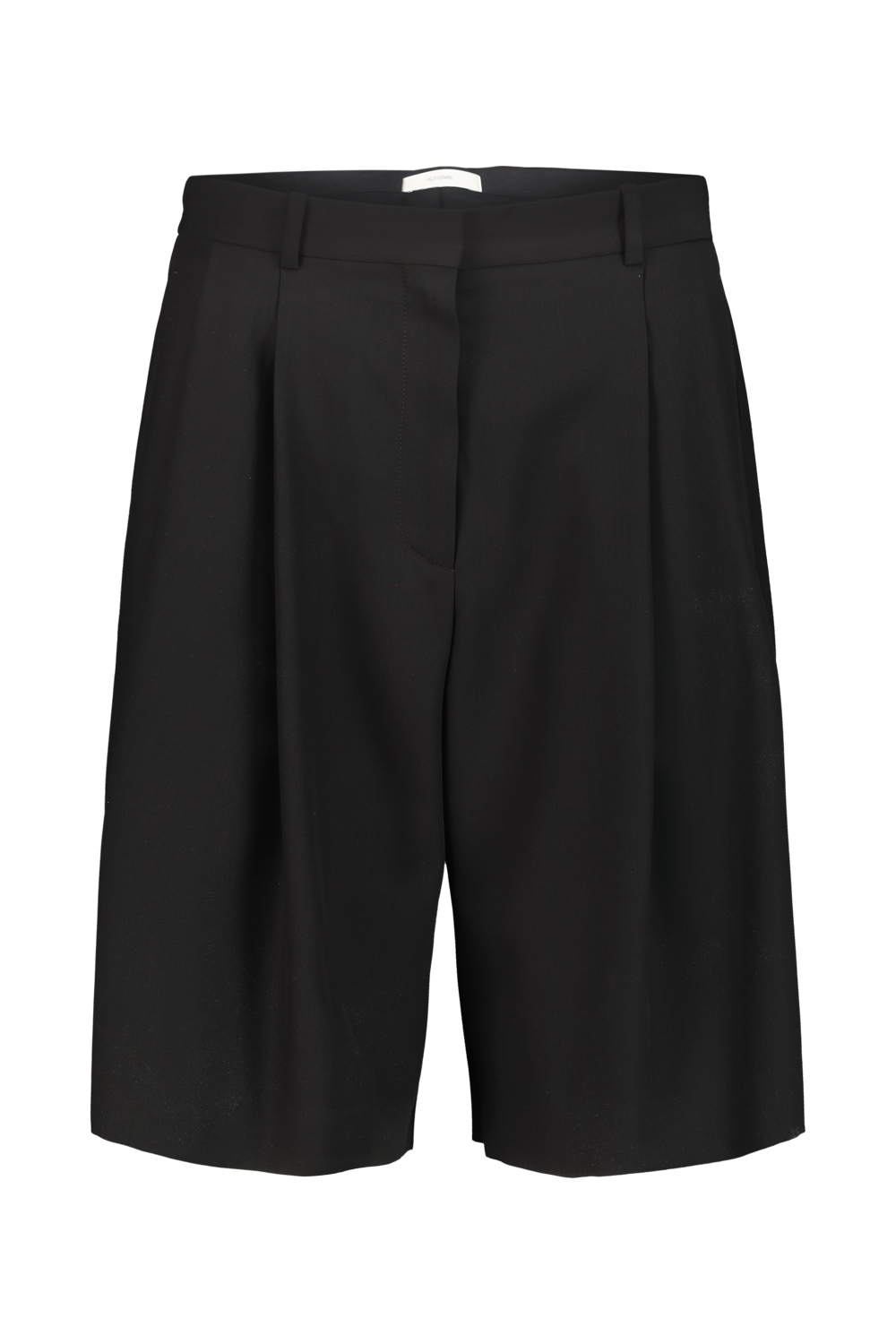 The Row Vesperis short in smooth virgin wool gabardine, Mid-rise, front double pleats, pressed front and back creases, side pockets.
